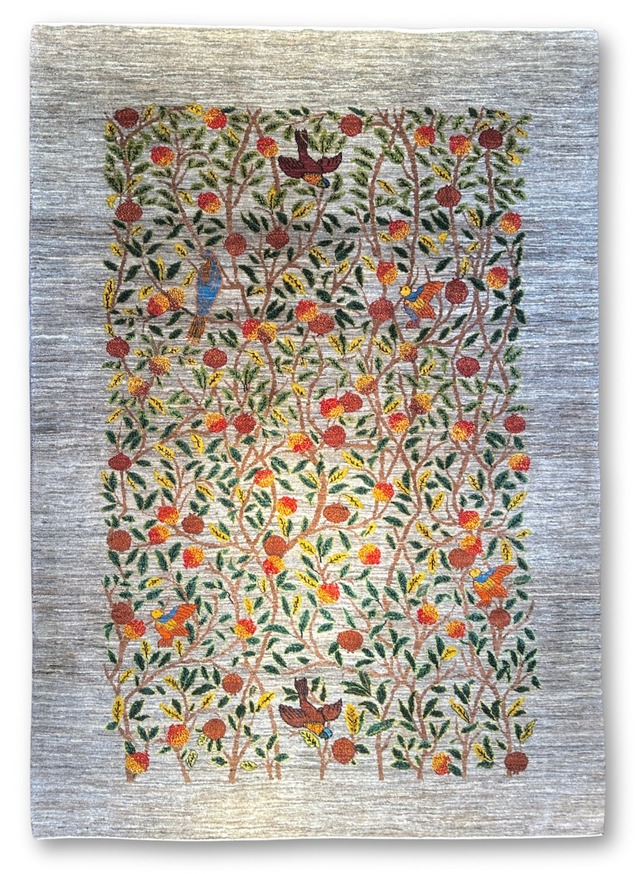 IDNo. GB520268_Z_SB 産地:南西イラン・シーラーズ 素材:縦糸 ウール、横糸 ウール サイズ:約250×179(cm) 厚み:約1.5(cm) ザクロの木のデザインです。円を描くように実をつけたシルエットは、ザクロを半分に切ってパカっと開けた際の、ギュっと実が詰まった断面そのものも連想させ、ザクロが象徴する「繁栄」のメッセージを、より一層強く引き出しているように感じさせられます。 ✴︎こちらの商品には滑り止めをサービスでお付け致しておりますので、お届けしてからすぐにお使い頂けます。 ✴︎ウール用洗剤で手洗いできます。商品お届け時に「ギャッベのお手入れ」に関するご説明も併せてお送り致します。 ※ 店頭でも販売しております。売り切れの際は何卒ご了承お願い致します。