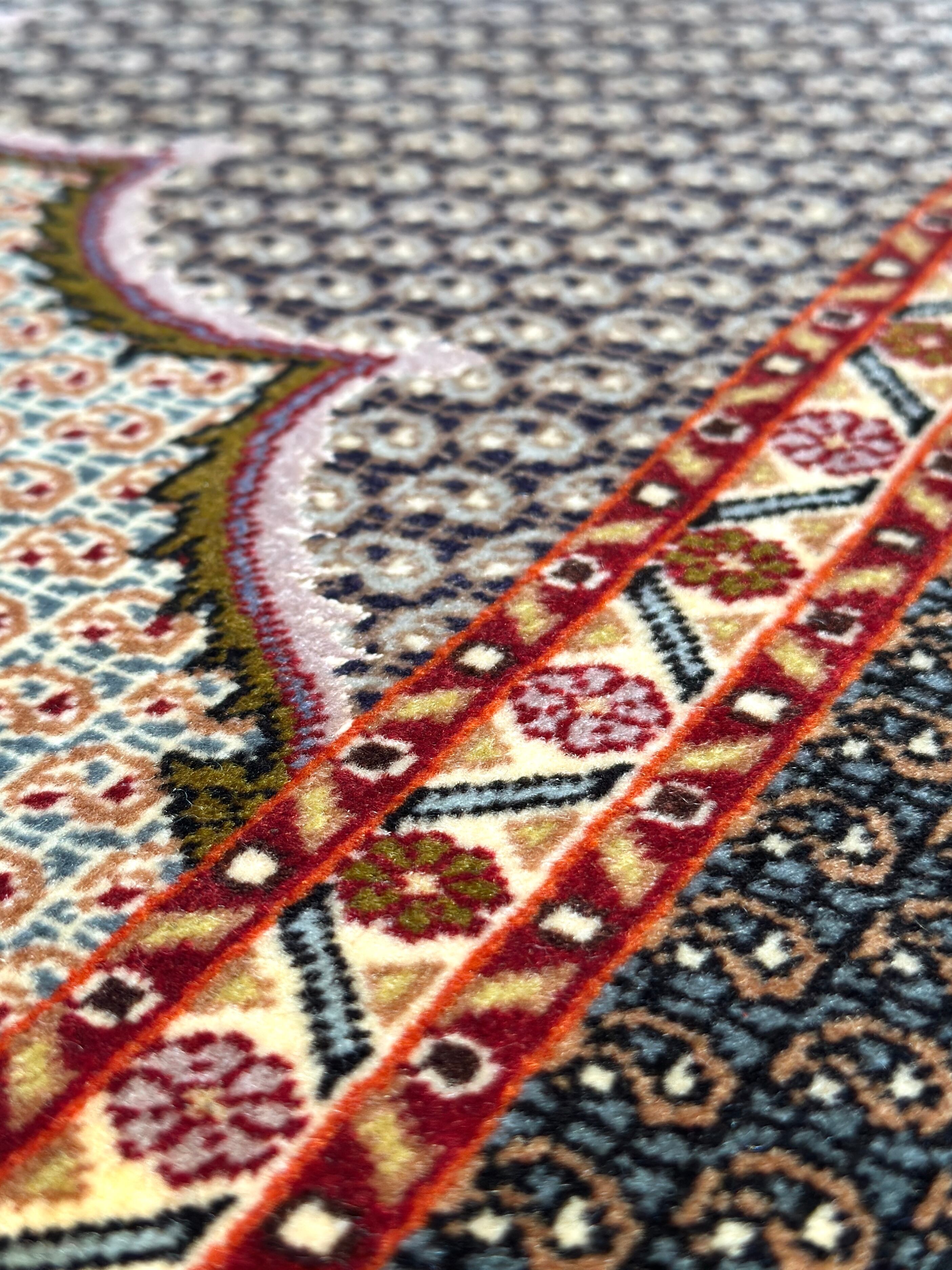 そしてなんと言っても、古いタブリーズの特徴が出るのが【配色】です。緑をベースに青ピンク紫黄色etc…とパステルカラーが各所に添えられ、現代物には見られない色の組み合わせが、マニア心をくすぐられる魅力的な一枚となっております。