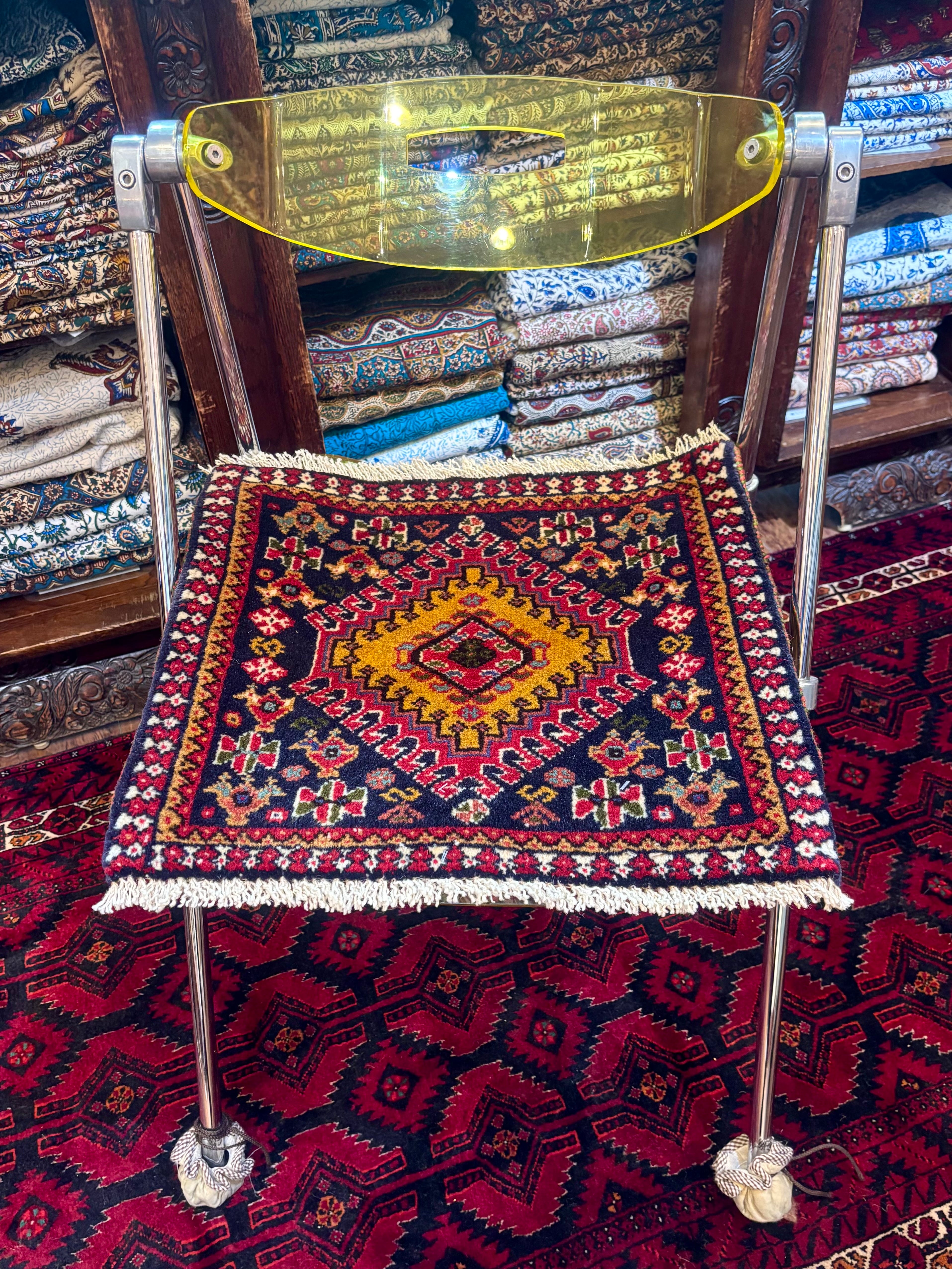 ペルシャギャラリーの店頭では、お椅子の上にお使い頂けるお座布団サイズからランナーサイズ、リビングやダイニングテーブル下にもお使い頂ける大判サイズまで、ヤラメ族のお品を豊富にご用意致しております。