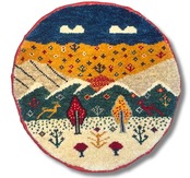 【丸いミニギャッベ】フサなしタイプ〜椅子の上や車のシートにぴったり!ギフトにも 直径φ約40(cm) GB680119