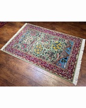 ケルマンの絨毯のデザインには、この地で先に行われていたショール生産の影響が見られます。ケルマンの美しいショールに関しては、マルコ・ポーロもその存在に触れており、当時のヨーロッパでは広く好まれていました。こうした歴史の中で、ケルマン独自の美的感覚が養われ、他に類をみない華やかな絨毯のデザインを作り上げています。