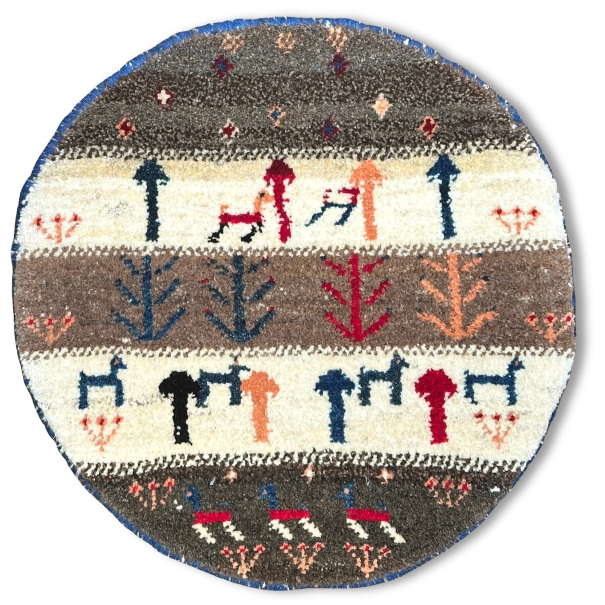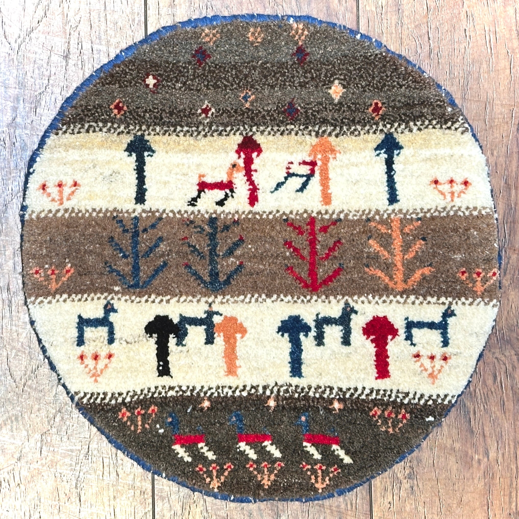 【丸いミニギャッベ】フサなしタイプ〜椅子の上や車のシートにぴったり!ギフトにも 直径φ約40(cm) GB680110