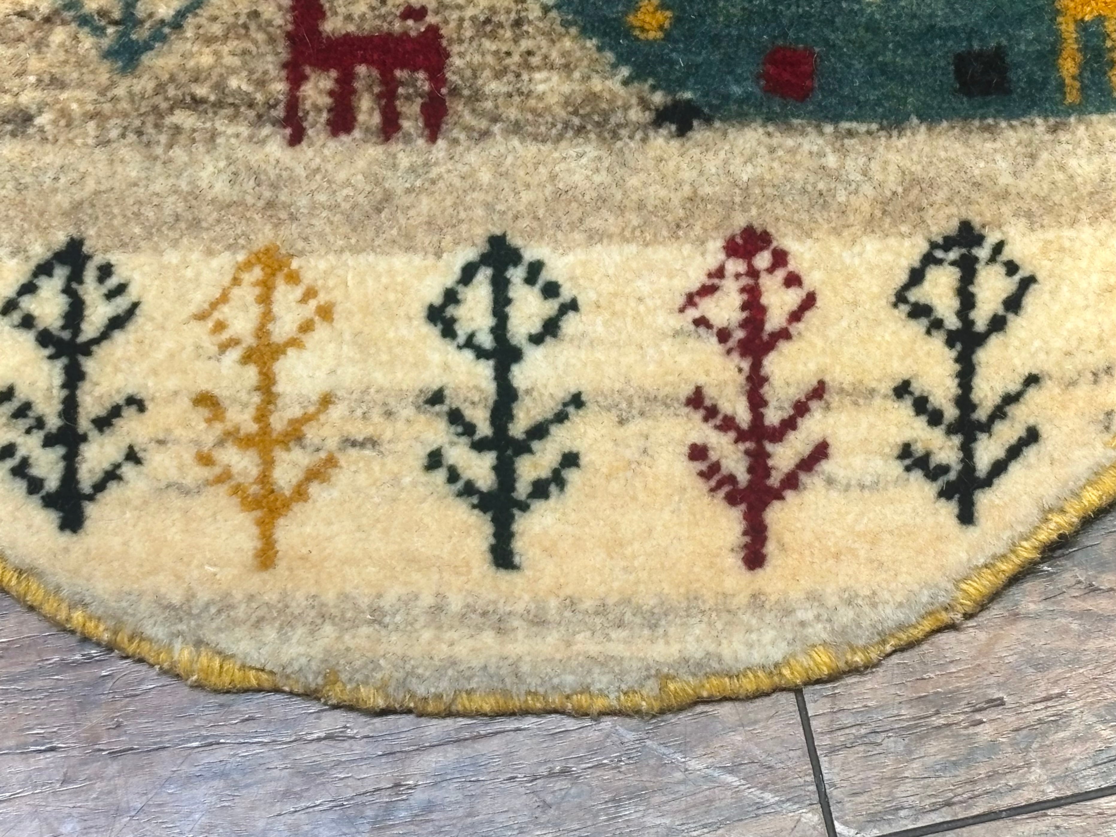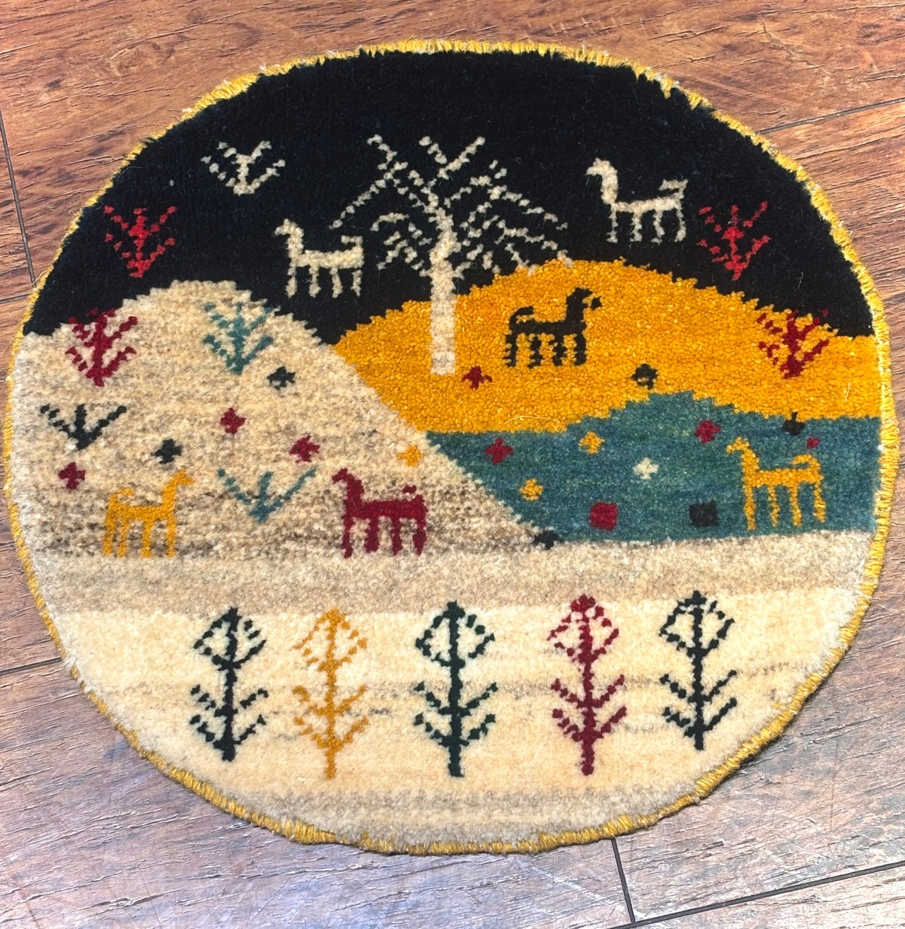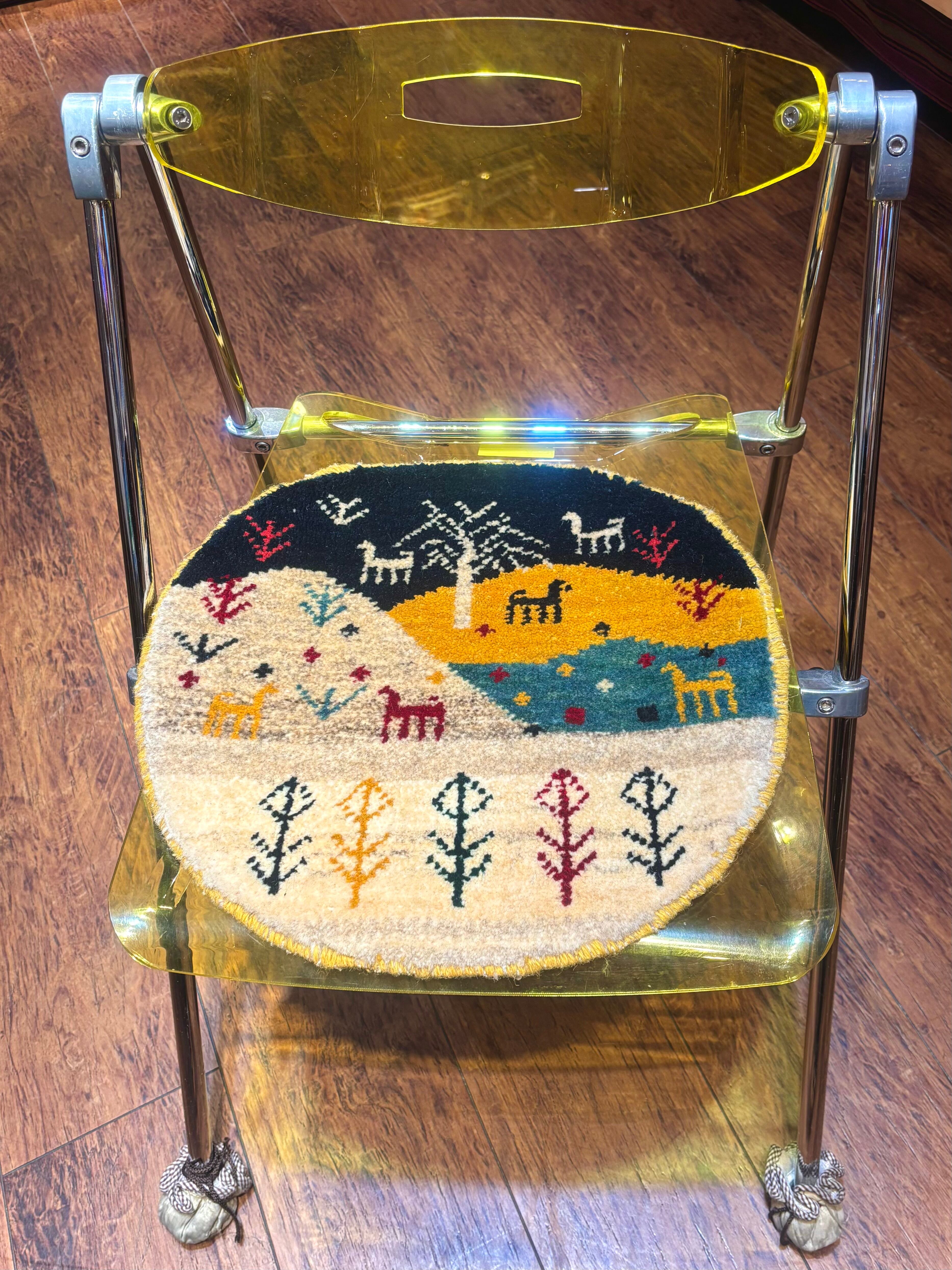 【丸いミニギャッベ】フサなしタイプ〜椅子の上や車のシートにぴったり!ギフトにも 直径φ約40(cm) GB680120