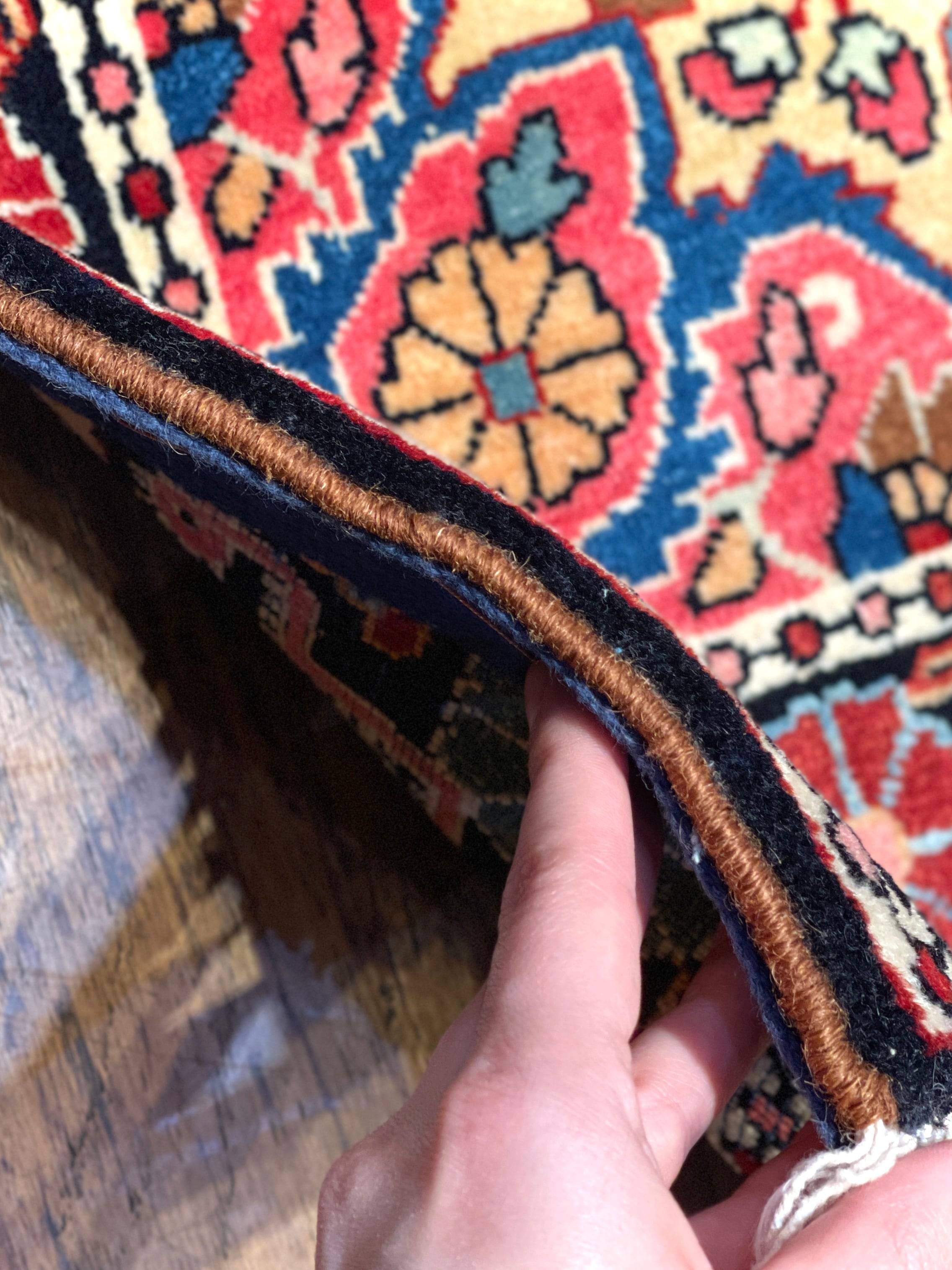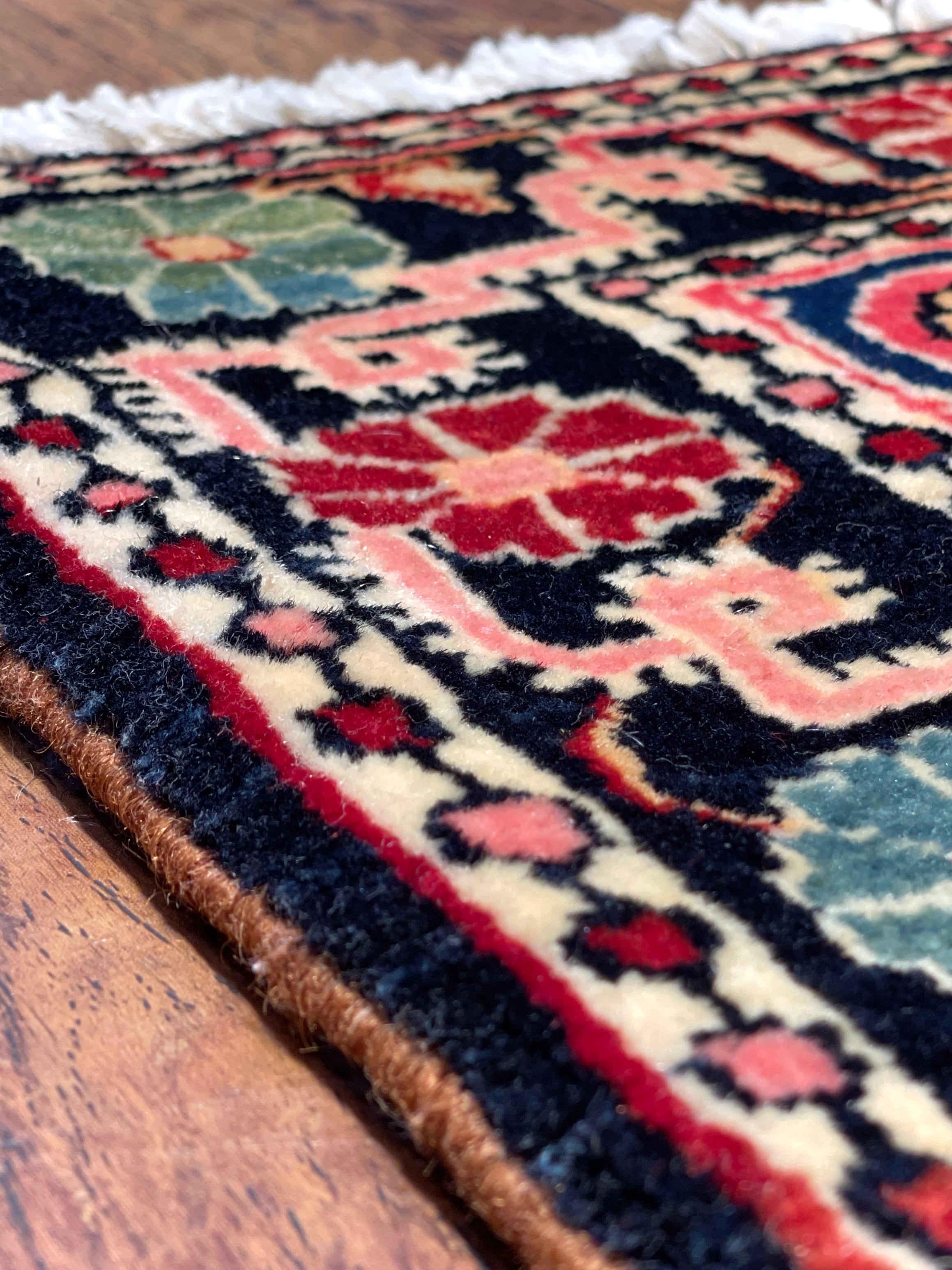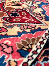 50年以上前に織られた西イラン・ジョーザン産のオールド絨毯です。西イランの数ある産地の中でも、素材と織りの緻密さで一線を画すのがジョーザン。絨毯の整った表面に、その差が如実に表れています。