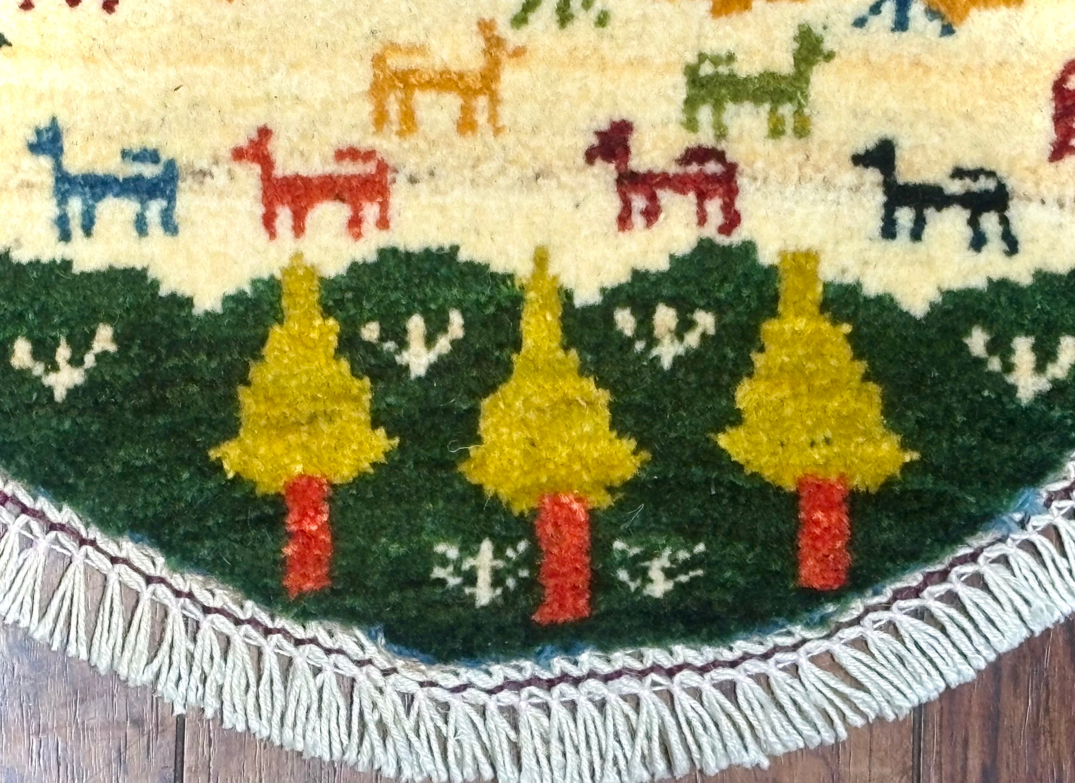 【丸いミニギャッベ】椅子の上や車のシートにぴったり!ギフトにも 直径φ約40(cm) GB690872