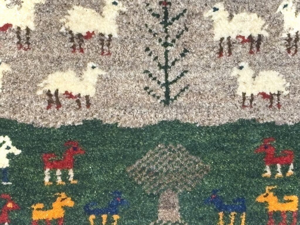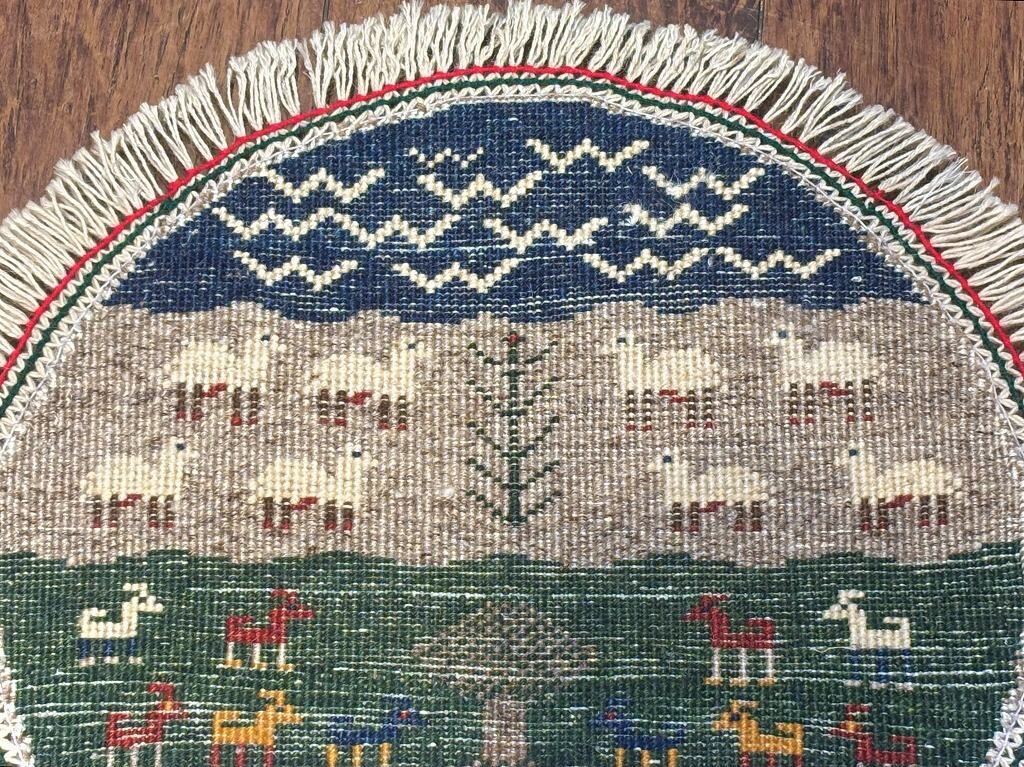 当店では、〈正方形〉と〈円形〉の2種類のタイプのミニギャッベをご用意致しております。円形タイプは、より細めの上質なウールが用いられていることから、織りが細かく、曲線や細密な表現が活かされた景色や動物(ライオン・ラクダ)など、個性的なデザインが揃います。