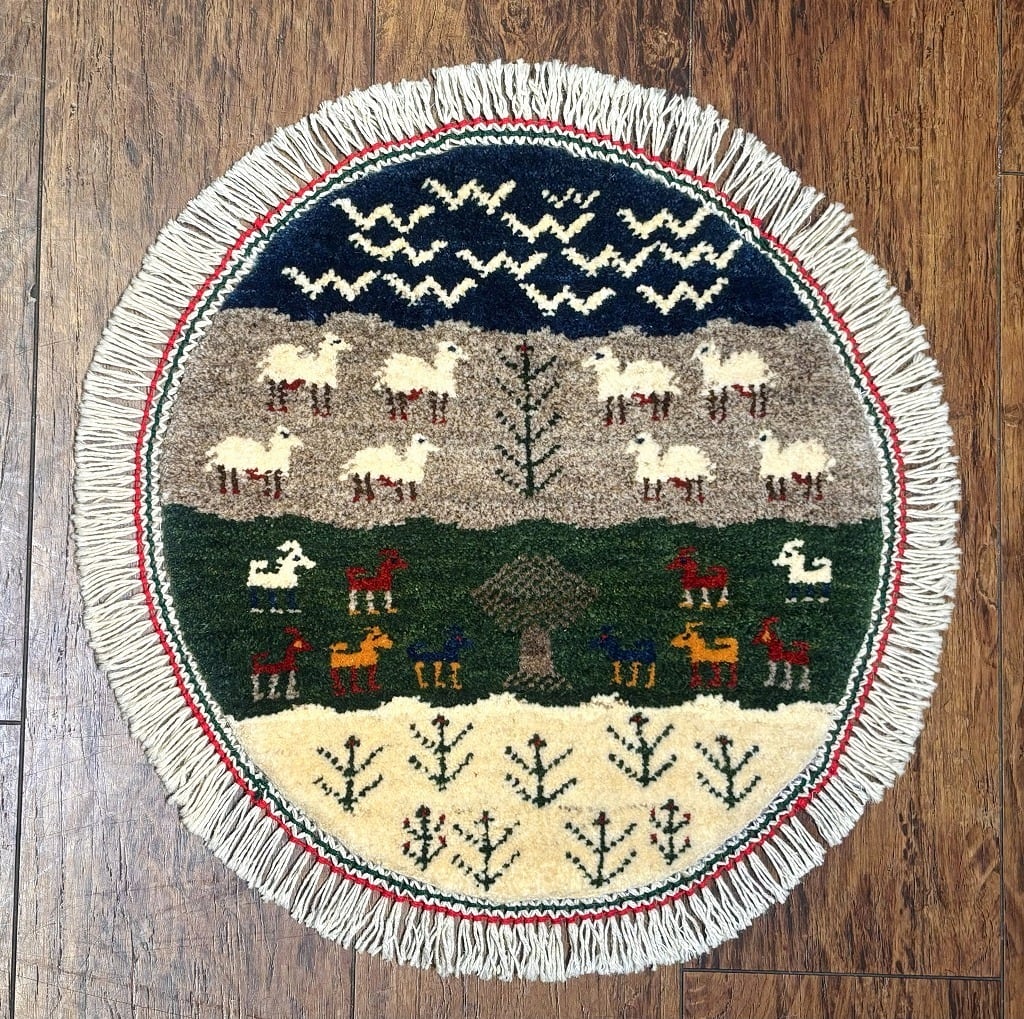 【丸いミニギャッベ】椅子の上や車のシートにぴったり!ギフトにも 直径φ約40(cm) GB680227
