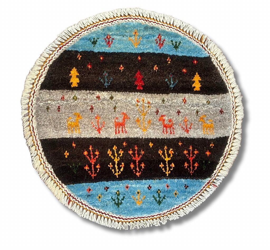 【丸いミニギャッベ】椅子の上や車のシートにぴったり!ギフトにも 直径φ約40(cm) GB690696