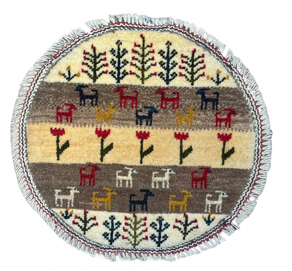 【丸いミニギャッベ】椅子の上や車のシートにぴったり!ギフトにも 直径φ約40(cm) GB690799