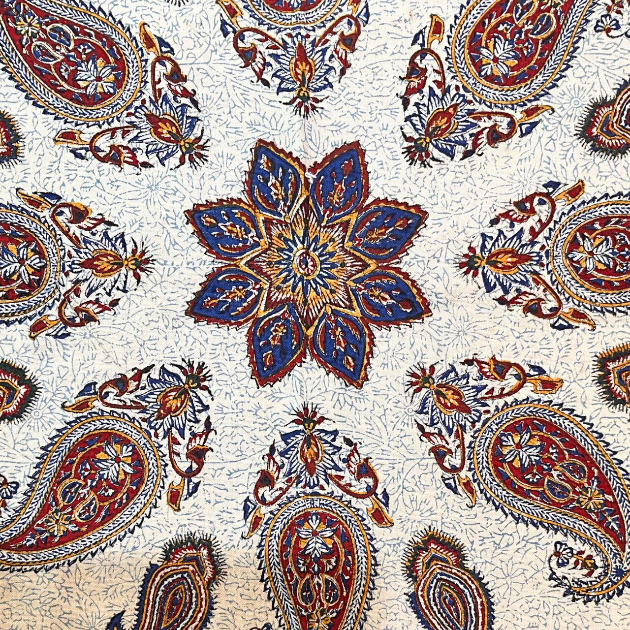梨の木を彫った木型を使って染められたハンドプリントの綿100%の更紗です。
