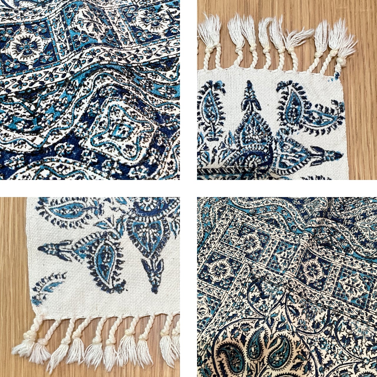 ペルシャ更紗は、イランの古都イスファハンで、伝統的な手法で作られているハンドプリントの手工芸品です。ペルシャ語では「ガラムカーリ」と呼ばれます。更紗職人により、梨の木を繰り抜いて作られた木判で、押し染めを繰り返してデザインを作っていきます。紋様を一つ完成させるのにも、異なる型判や色を塗り替えて押すので、紋様が出来上がるまでには4〜5回もの作業を必要とします。
