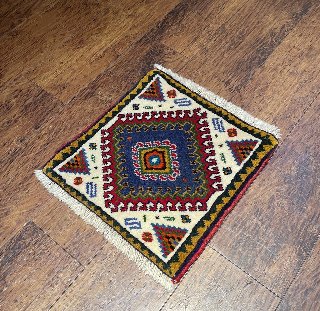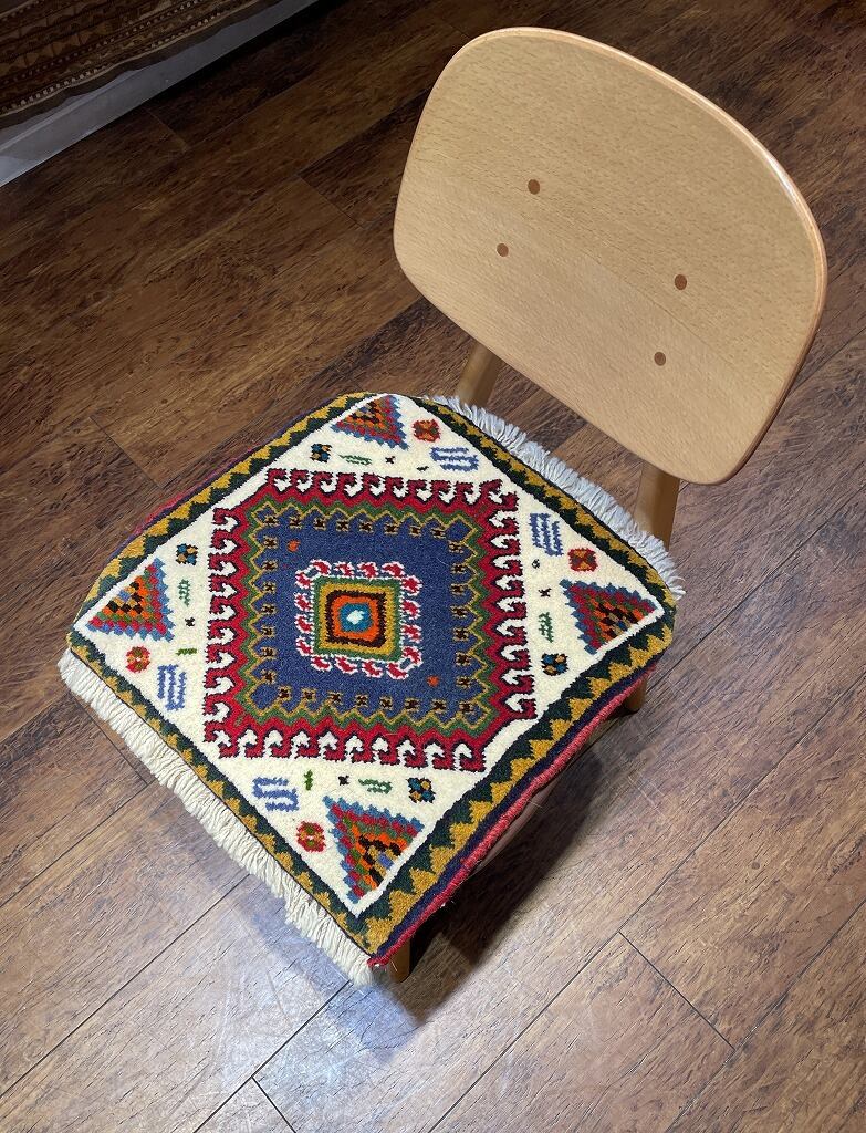 【ペルシャ絨毯】上質ウールのトライバルラグ ヤラメ族 約43×43(cm) PB900106