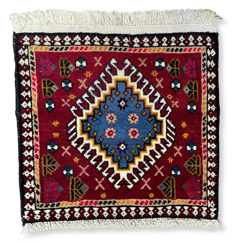 【ペルシャ絨毯】上質ウールのトライバルラグ ヤラメ族 約39×42(cm) PB900109