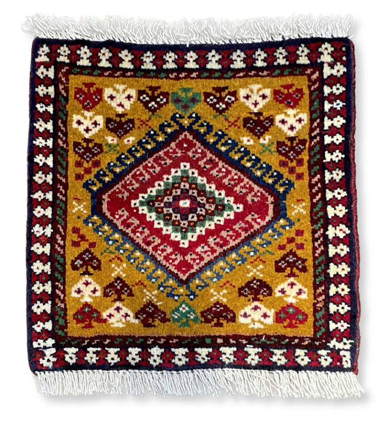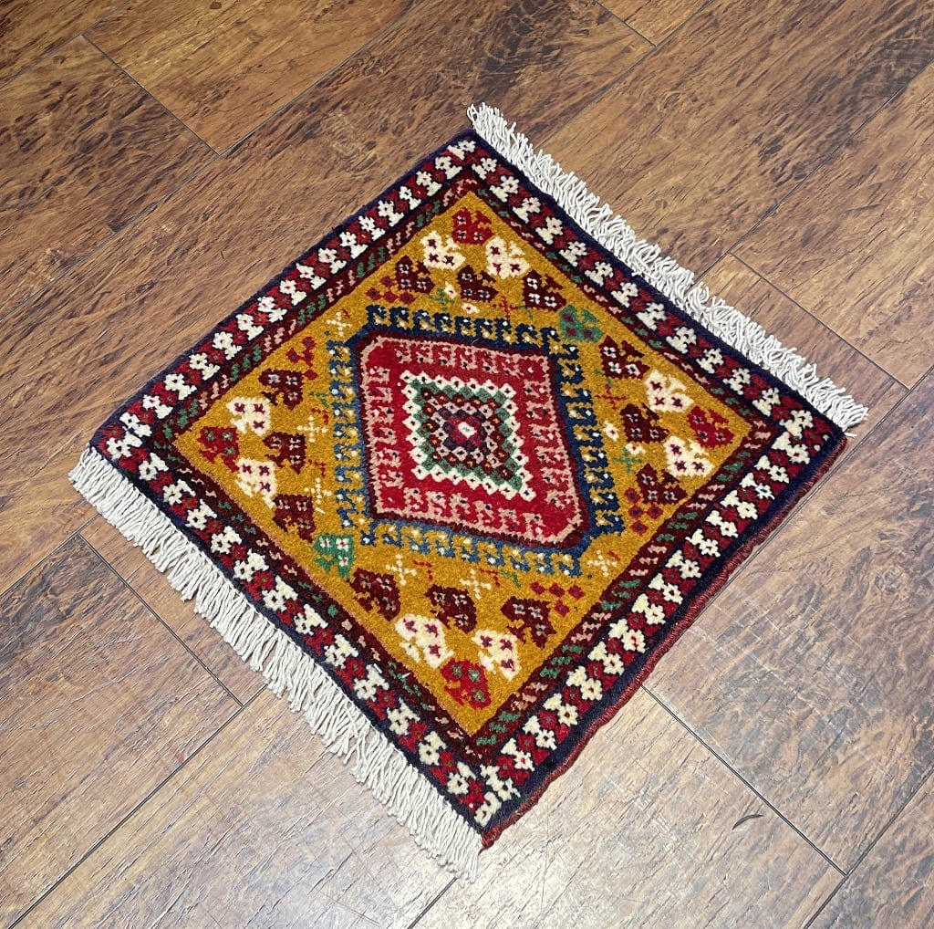 【ペルシャ絨毯】上質ウールのトライバルラグ ヤラメ族 約40.5×41.5(cm) PB900134