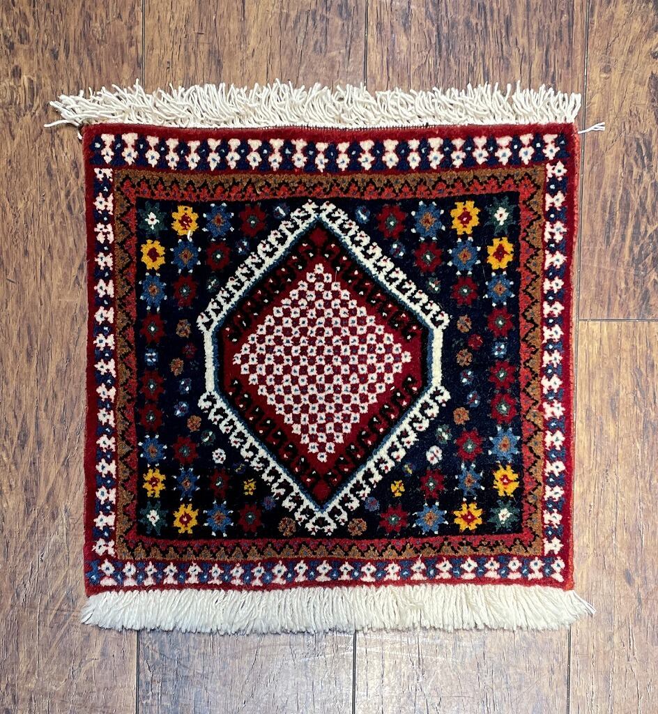 【ペルシャ絨毯】上質ウールのトライバルラグ ヤラメ族 約36.5×40(cm) PB900135
