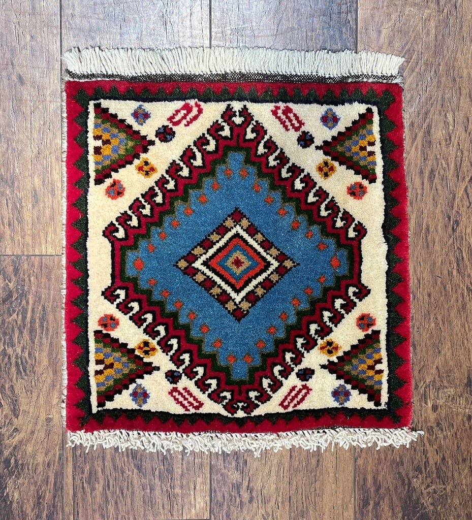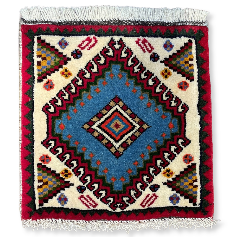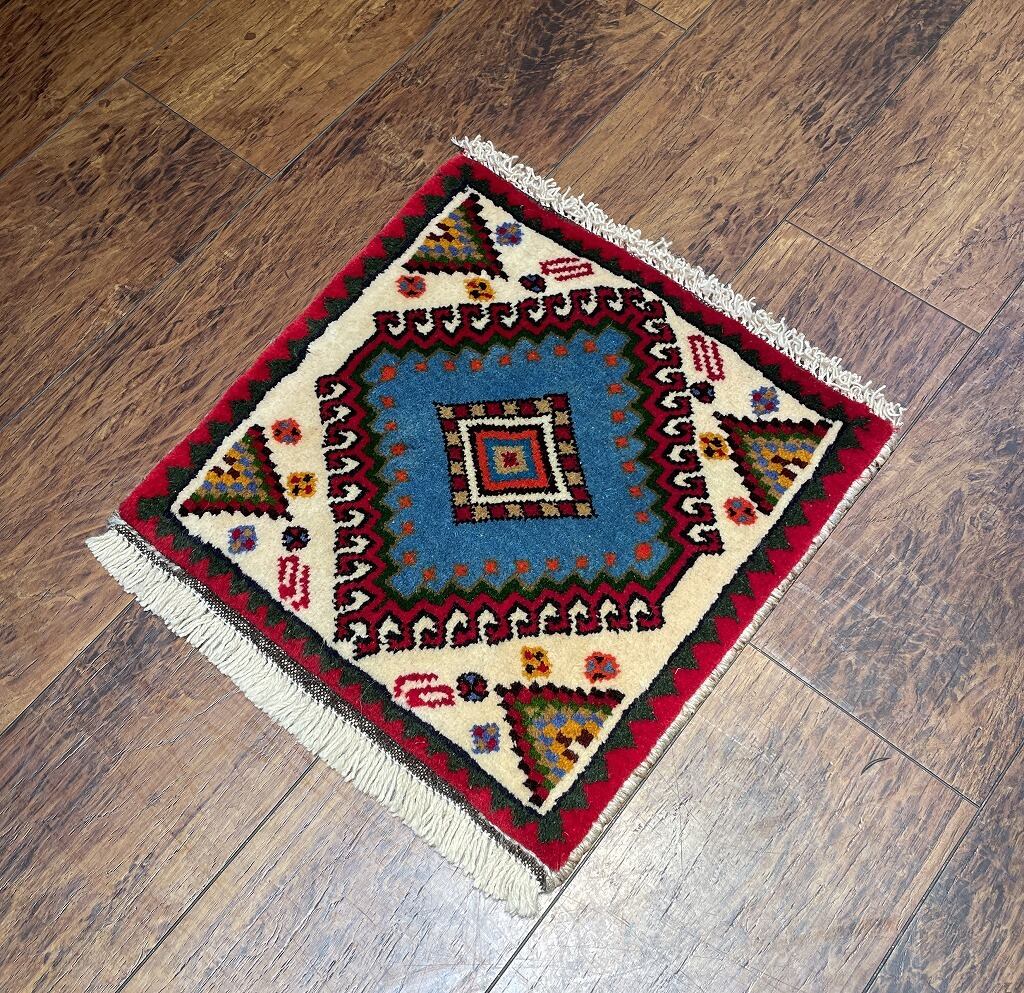 【ペルシャ絨毯】上質ウールのトライバルラグ ヤラメ族 約41×43(cm) PB900143