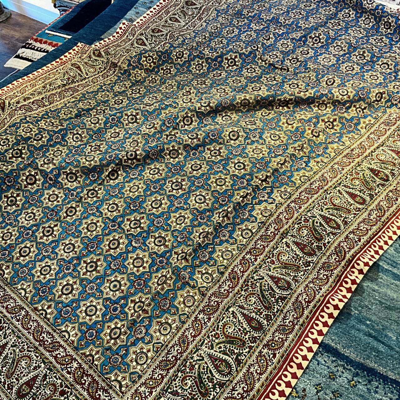 当店では、絨毯・キリム・ギャッベの買い付けと同様に、更紗の産地〜イスファハンの各工房を訪れ、直接買い付けや工房への特別オーダーをしております。