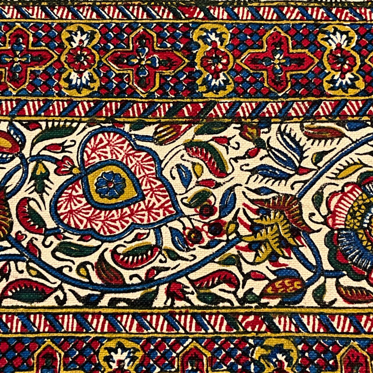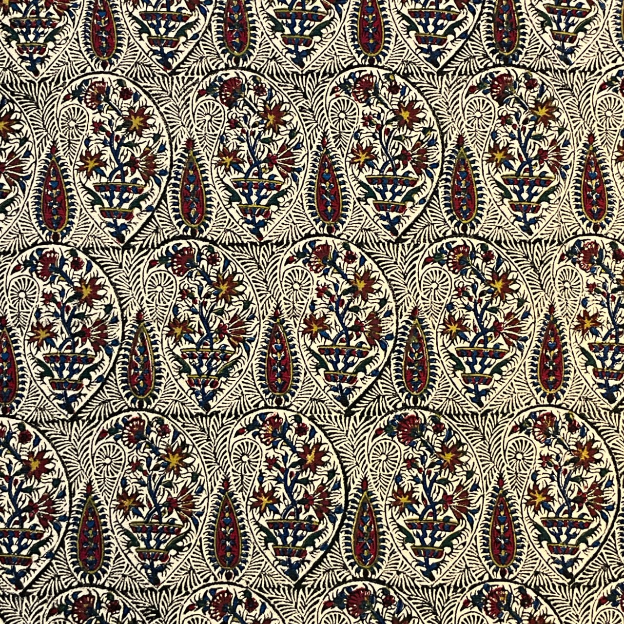 梨の木を彫った木型を使って染められたハンドプリントの綿100%の更紗です。