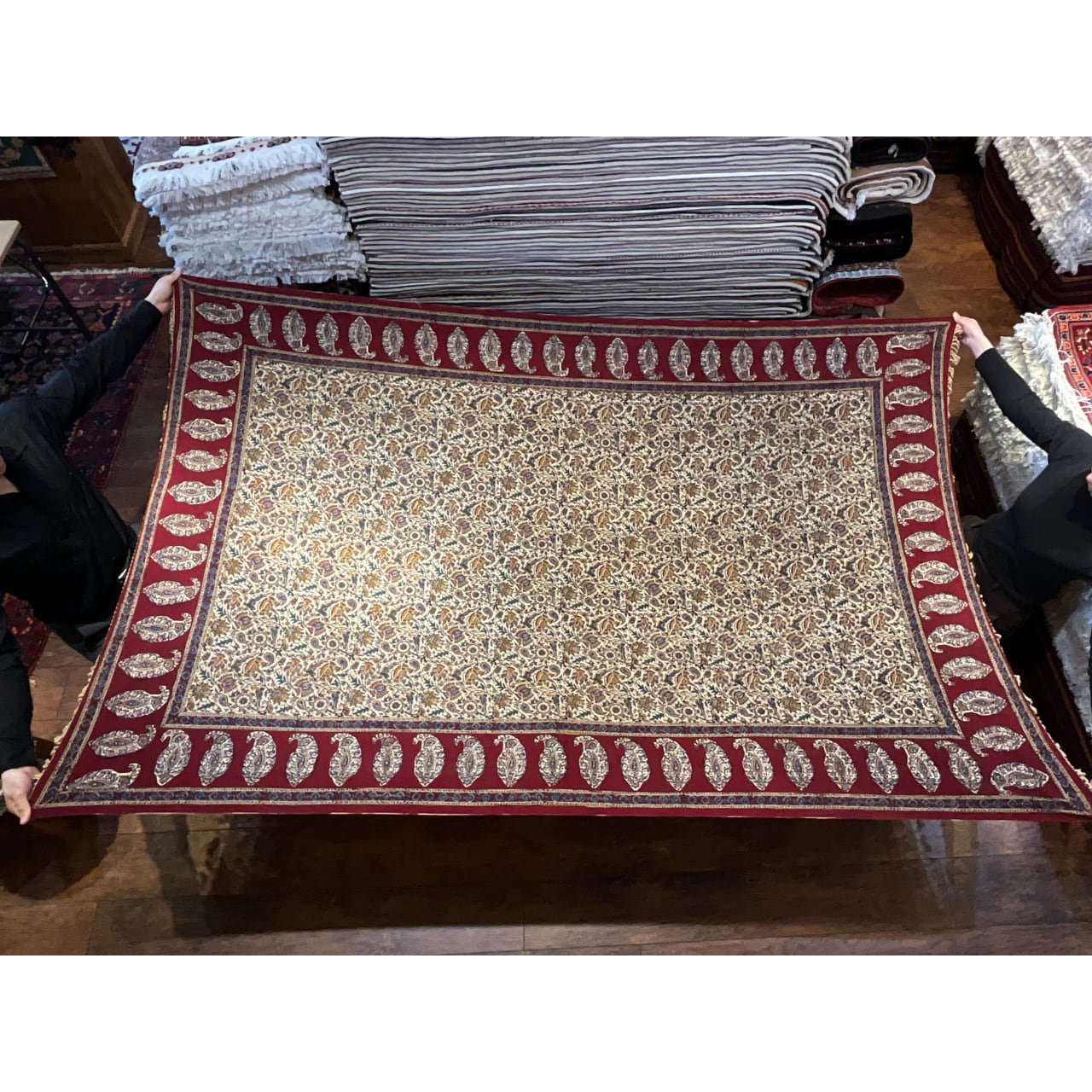 当店では、絨毯・キリム・ギャッベの買い付けと同様に、更紗の産地〜イスファハンの各工房を訪れ、直接買い付けや工房への特別オーダーをしております。
