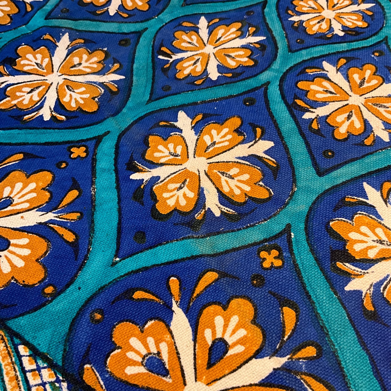 梨の木を彫った木型を使って染められたハンドプリントの綿100%の更紗です。