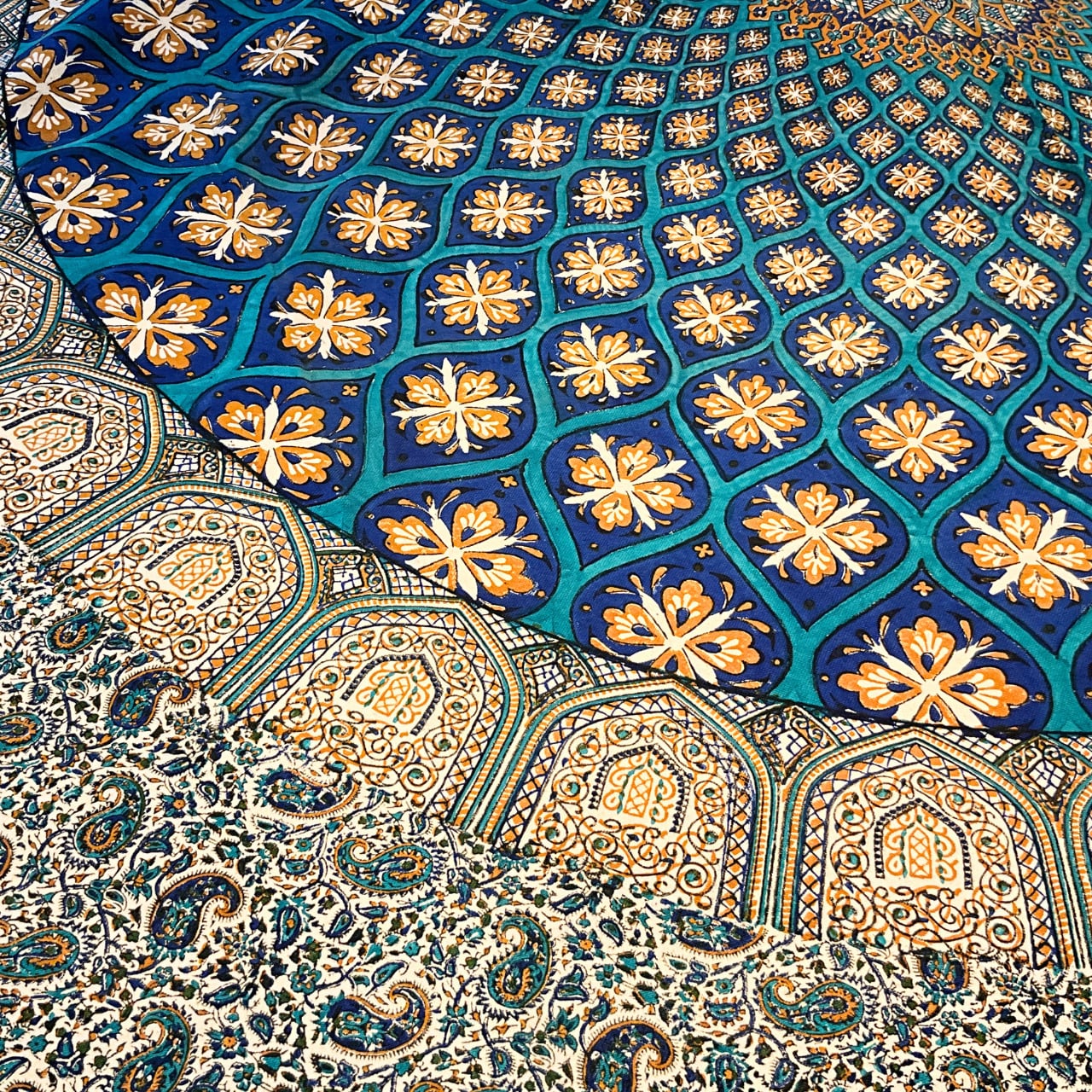 当店では、絨毯・キリム・ギャッベの買い付けと同様に、更紗の産地〜イスファハンの各工房を訪れ、直接買い付けや工房への特別オーダーをしております。
