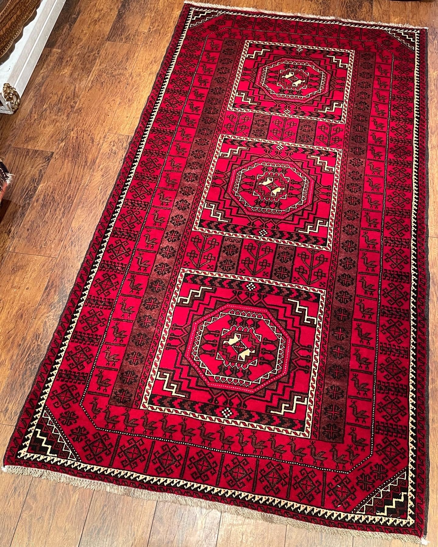 【オールド絨毯】約224×120(cm) バルーチ族 PB670097