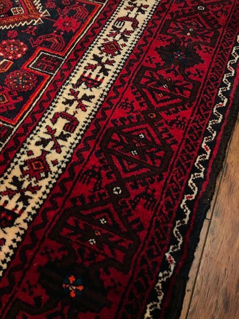 個性的な印象ですが、西イランの部族絨毯やキリムにはもちろん、エレガント系のペルシャ絨毯にも合いインテリアを選ばない不思議な魅力がある絨毯です。