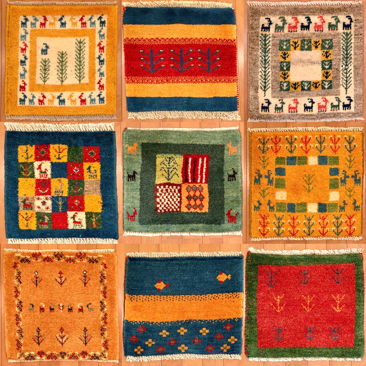 【ミニギャッベ】椅子の上や車のシートにぴったり!ギフトにも 約40x40(cm) GB600202