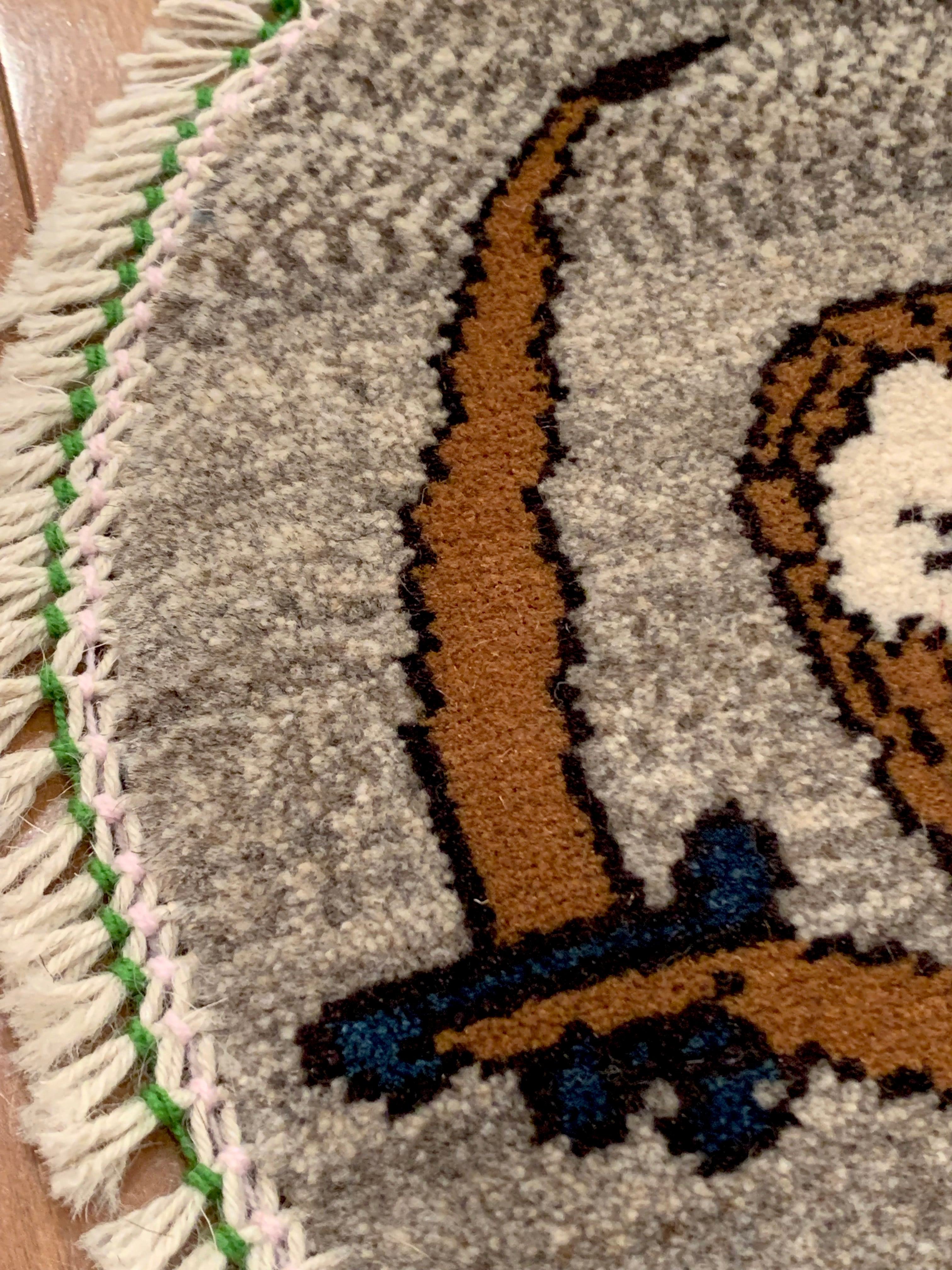 当店では、〈正方形〉と〈円形〉の2種類のタイプのミニギャッベをご用意致しております。円形タイプは、より細めの上質なウールが用いられていることから、織りが細かく、曲線や細密な表現が活かされた景色や動物(ライオン・ラクダ)など、個性的なデザインが揃います。