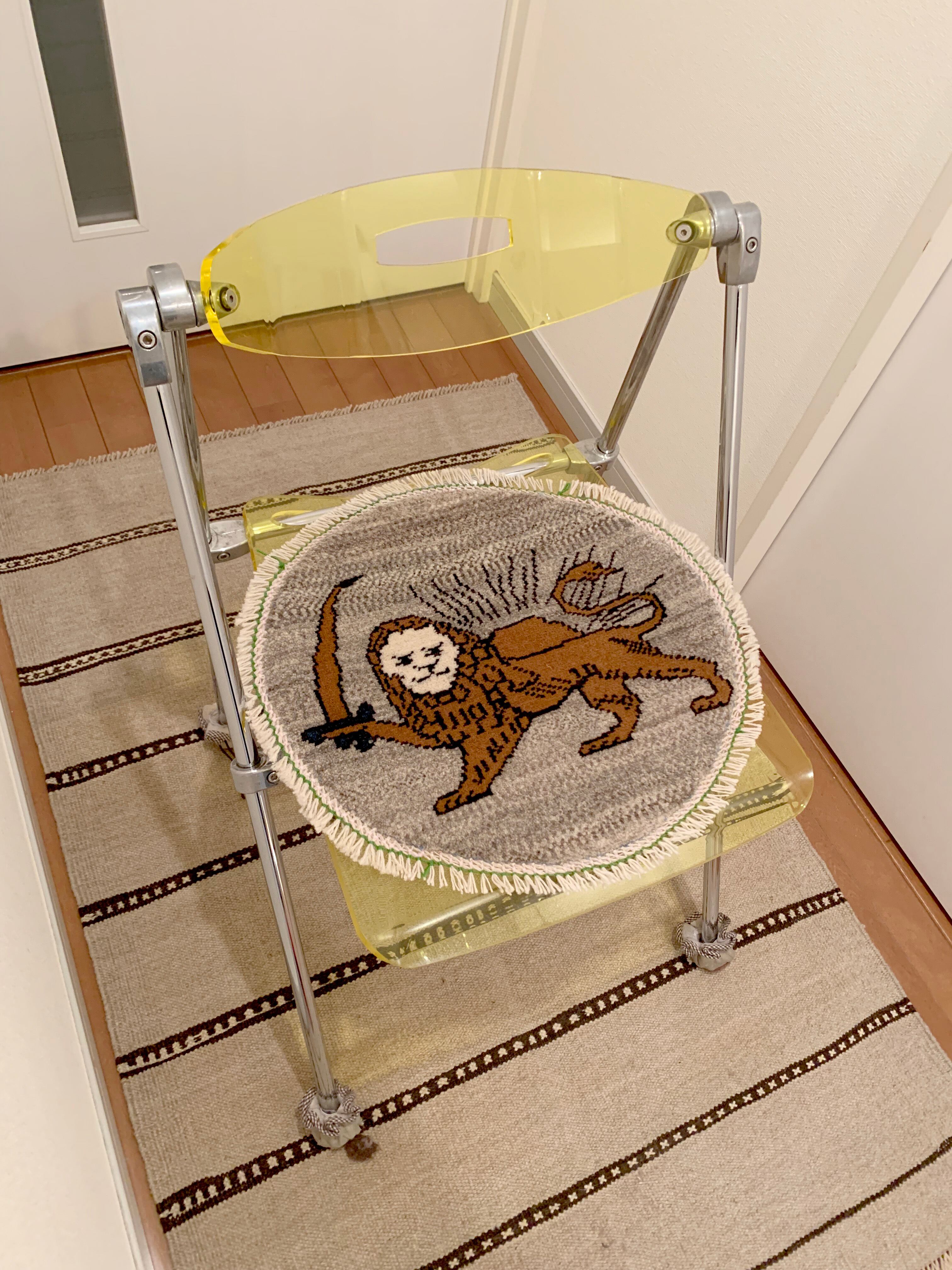通常タイプのお椅子の座面にお使い頂いても、自然に見えるサイズ感です。座面が円形のお椅子には、是非丸いミニギャッベを合わせたいですね!周囲にフサがつくと、より華やかな印象になります♪