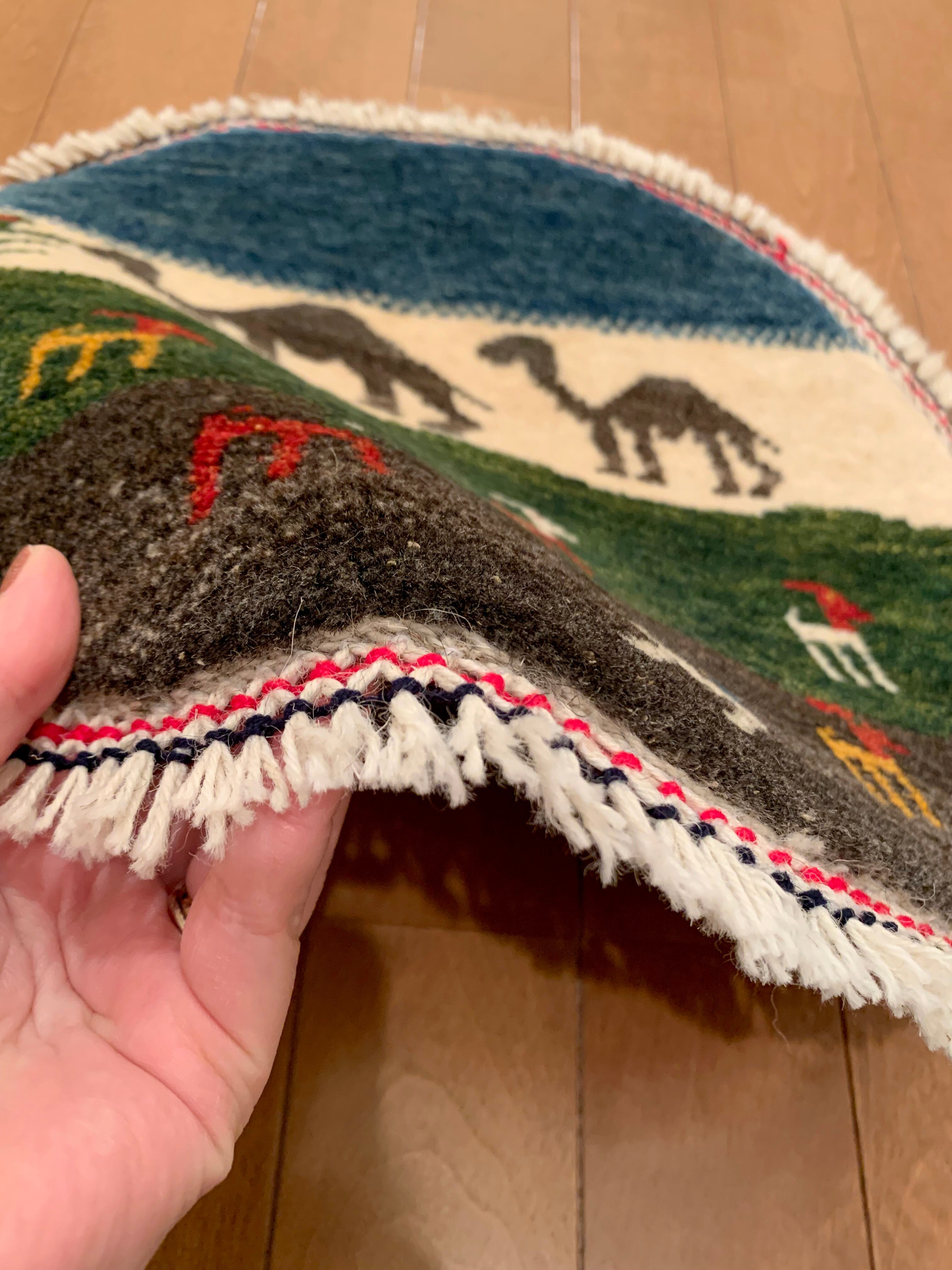 【丸いミニギャッベ】椅子の上や車のシートにぴったり!ギフトにも 直径φ約40(cm) GB680287