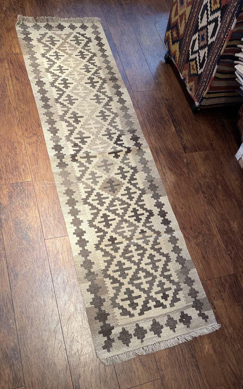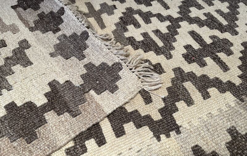 薄い織り上がりのキリムですが、ウールで織られているので、床の冷たさを感じさせず、また暑い季節でもスッキリとしたお使い心地で、オールシーズン活躍します。