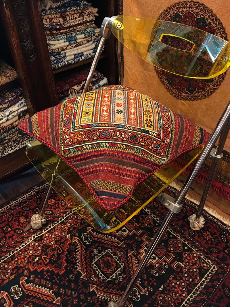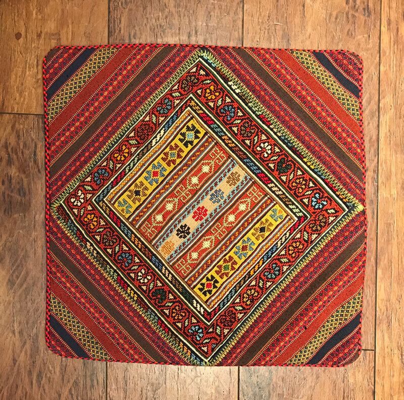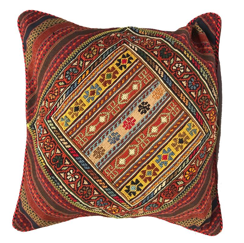 イラン国内でも評価が高い、南イランのシールジャン産のソマック織りキリムをクッション表地に使用しています。