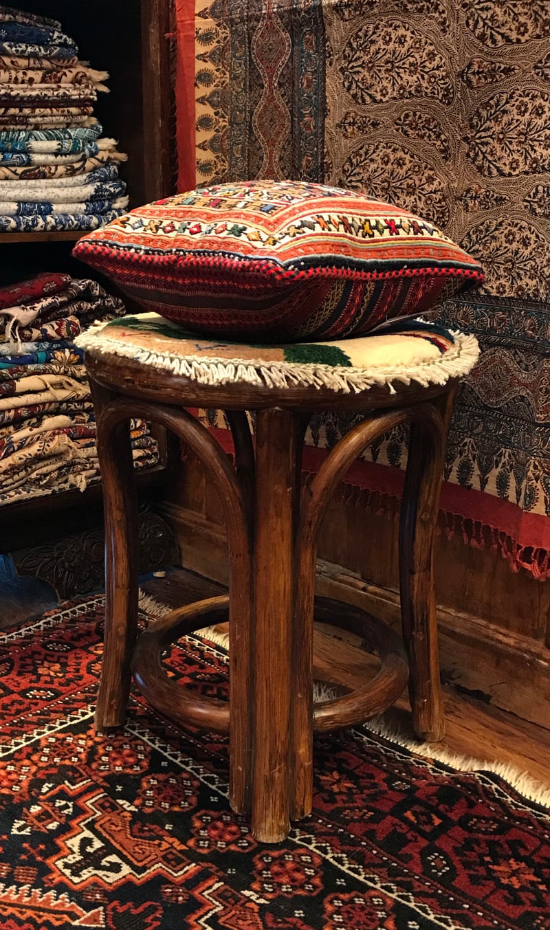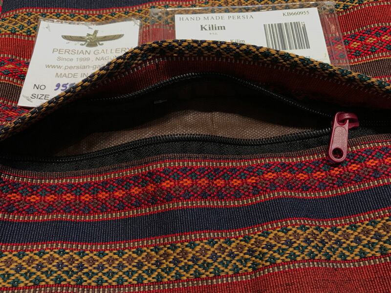 イラン国内でも評価が高い、南イランのシールジャン産のソマック織りキリムをクッション表地に使用しています。