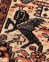 バルーチ族の絨毯は重厚な色合いのものが多く、東洋的で渋い印象ですが、実は幾何学紋様へと姿を変えた動物柄が多く含まれています。