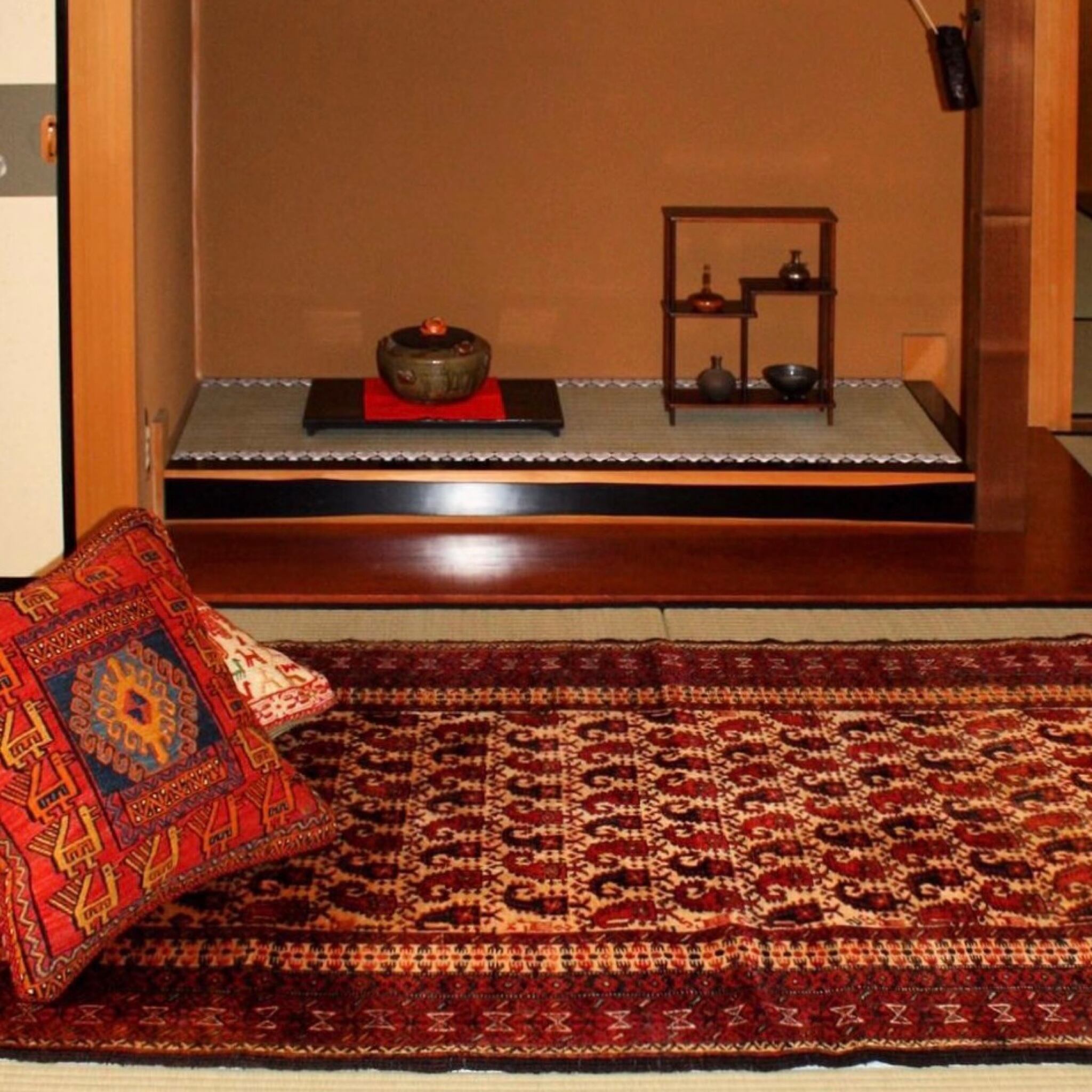 20〜40am位の幅で数十メートルの長さに織られています。それを適当な長さにカットして繋ぎ合わせ大きな一枚に仕立てる伝統的なイランの織物です。こたつの上掛け布団などにも使われていました。