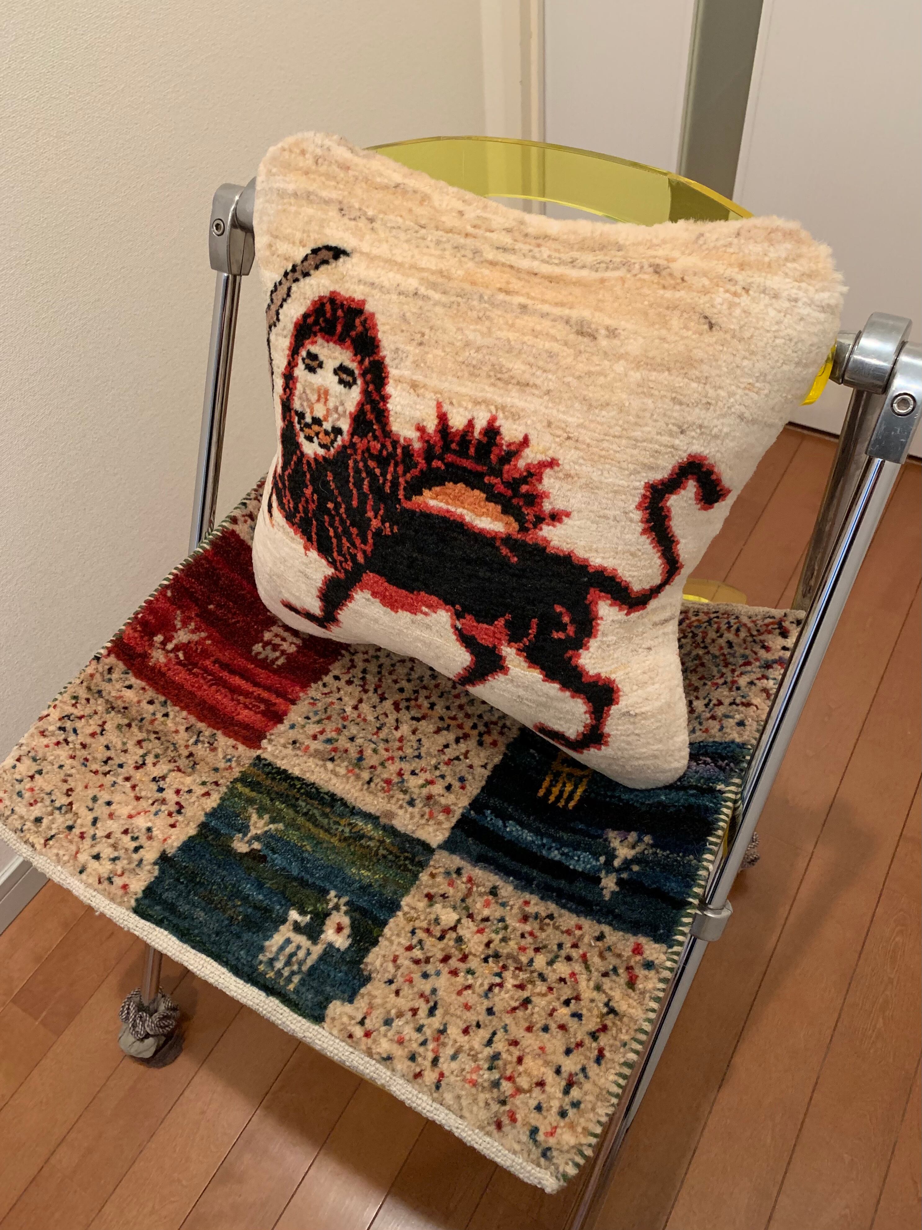 ◉ミニサイズのギャッベをクッションにお仕立てしたものです。中綿付きでお届け致します。