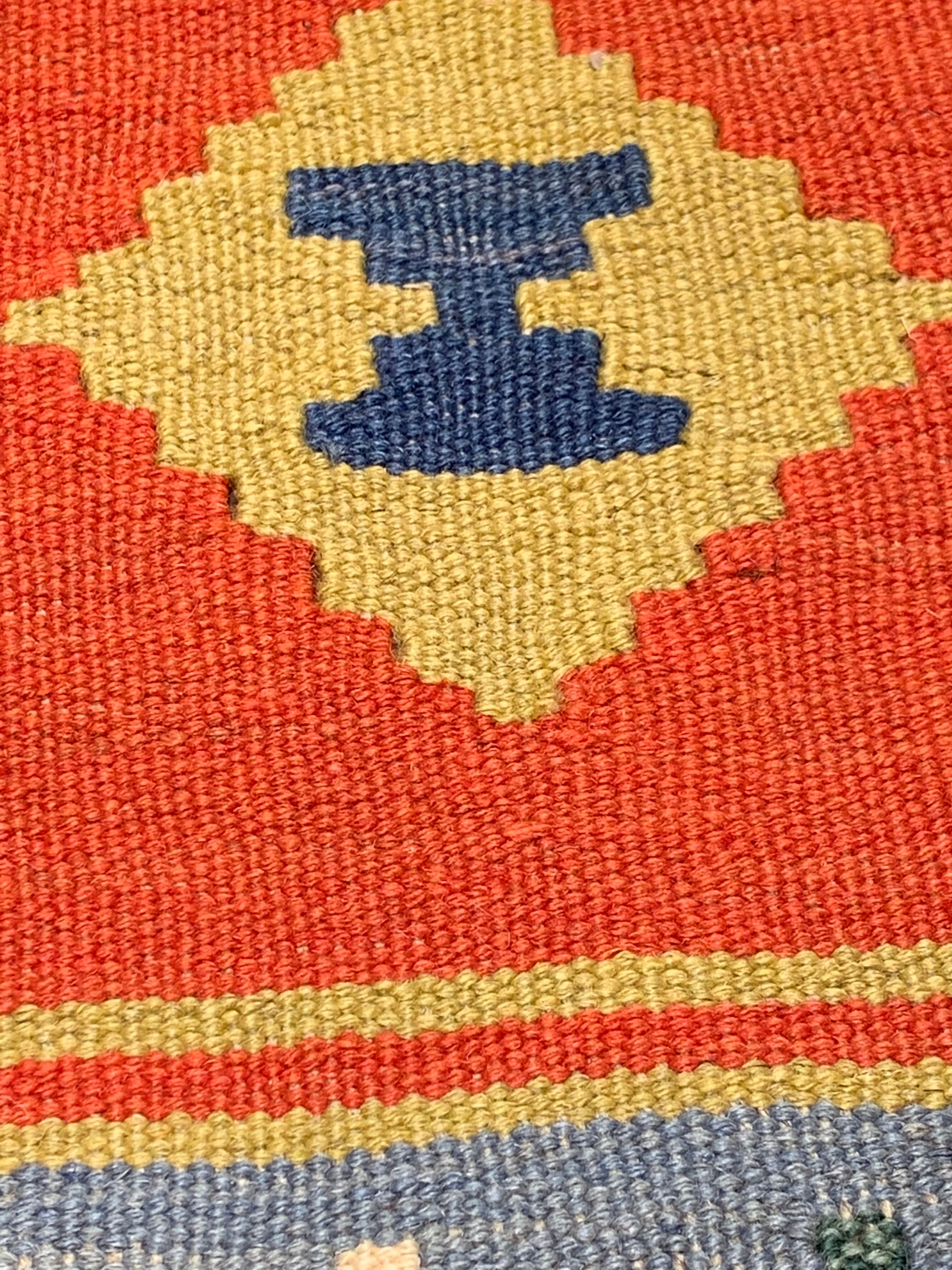 薄い織り上がりのキリムですが、ウールで織られているので、床の冷たさを感じさせず、また暑い季節でもスッキリとしたお使い心地で、オールシーズン活躍します。
