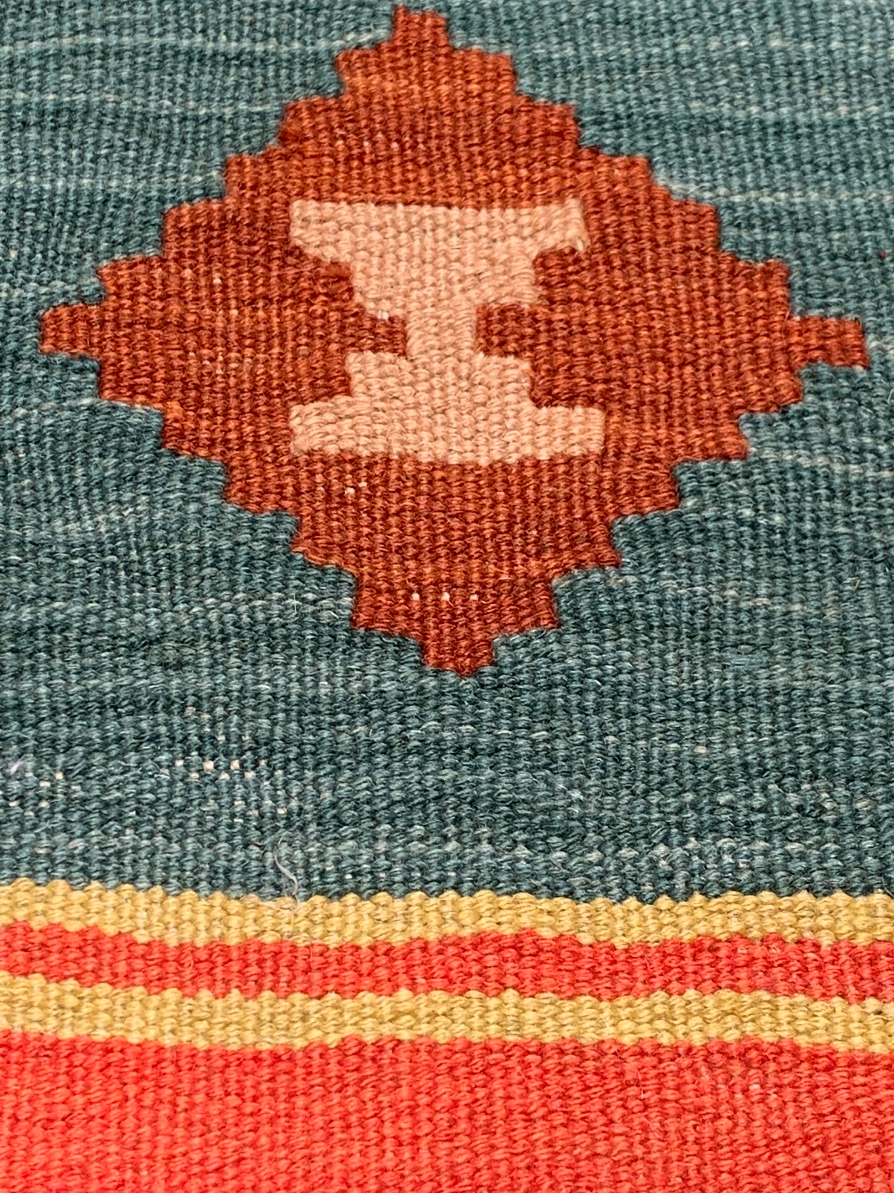 キリムらしい明るい色合いの幾何学紋様で、一見印象が強そうなイメージですが、お部屋をスッキリ引き締め、メリハリをもたらしてくれます。