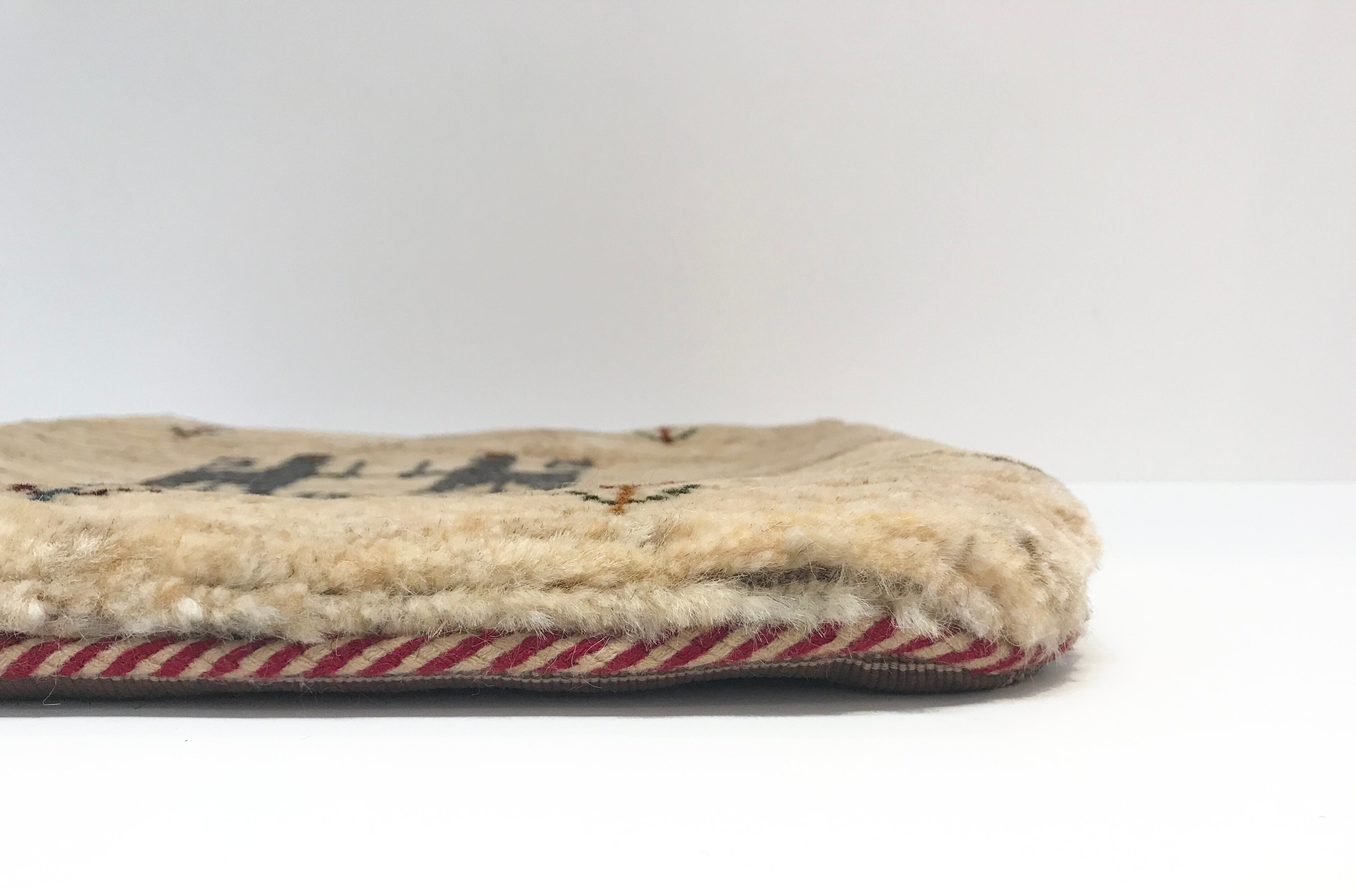◉ミニサイズのギャッベをクッションにお仕立てしたものです。中綿付きでお届け致します。