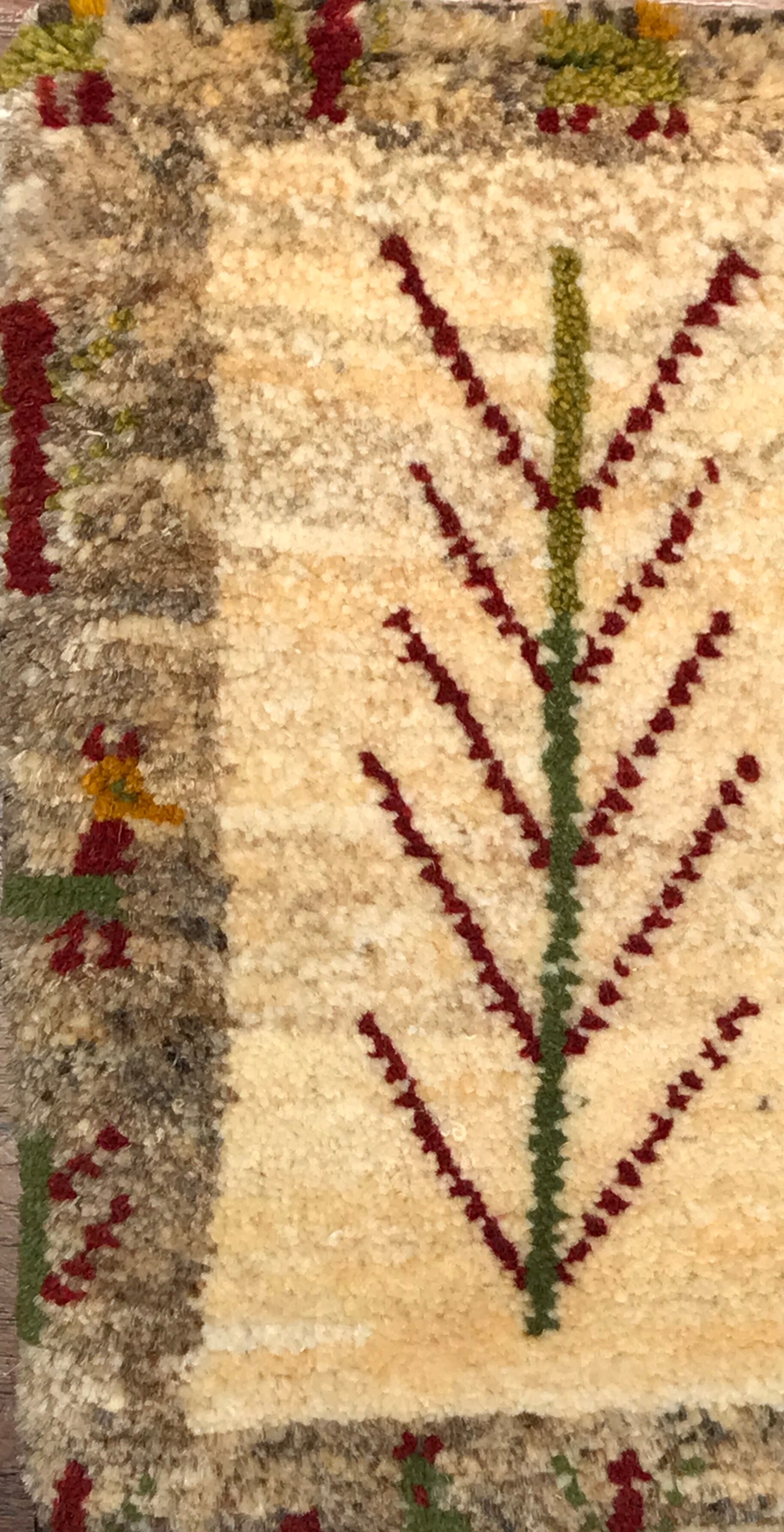 ◉ミニサイズのギャッベをクッションにお仕立てしたものです。中綿付きでお届け致します。