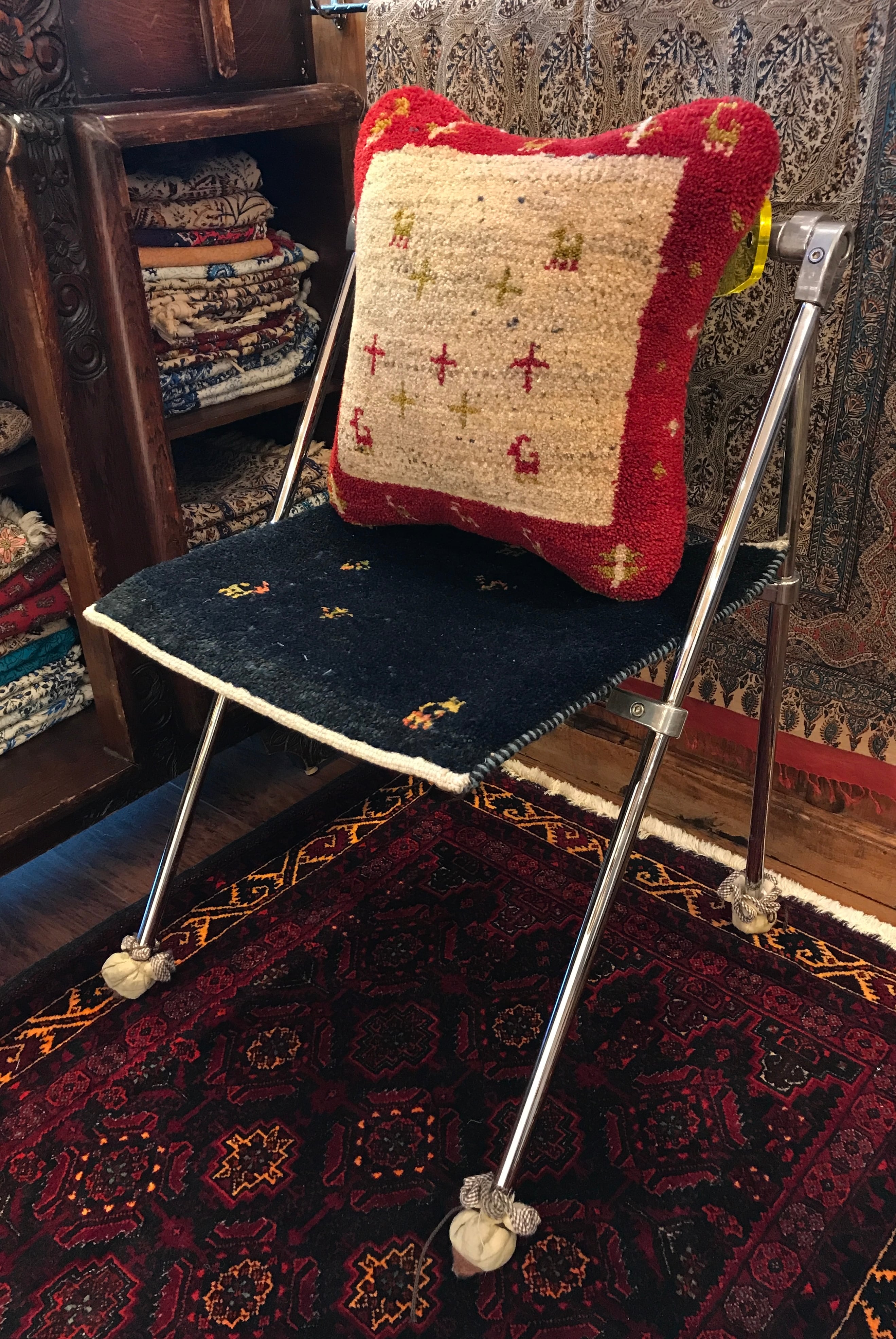 ◉ミニサイズのギャッベをクッションにお仕立てしたものです。中綿付きでお届け致します。
