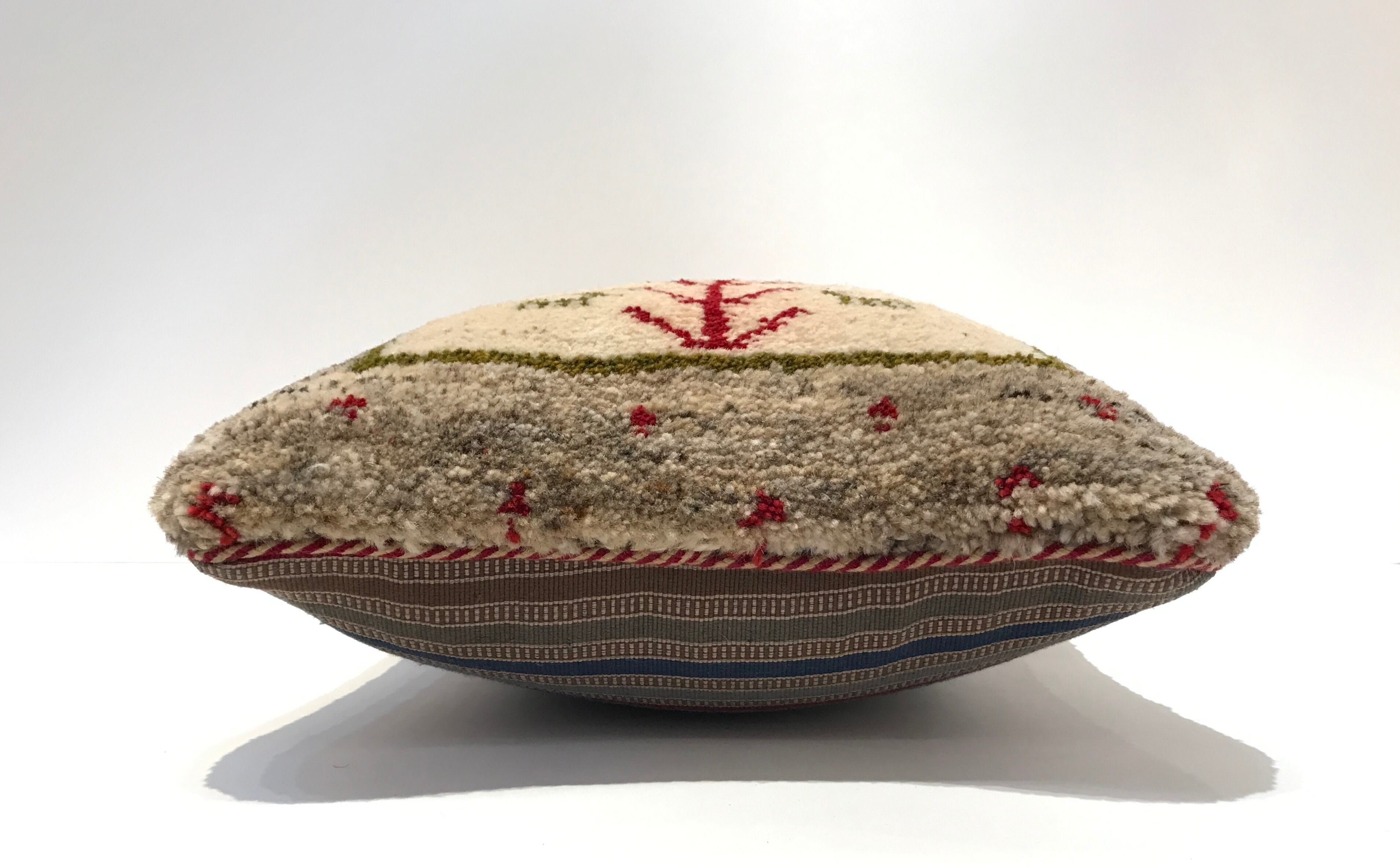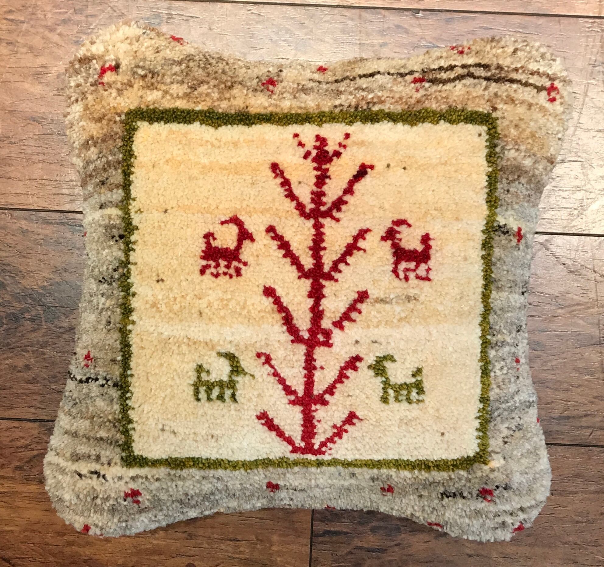 ◉ミニサイズのギャッベをクッションにお仕立てしたものです。中綿付きでお届け致します。