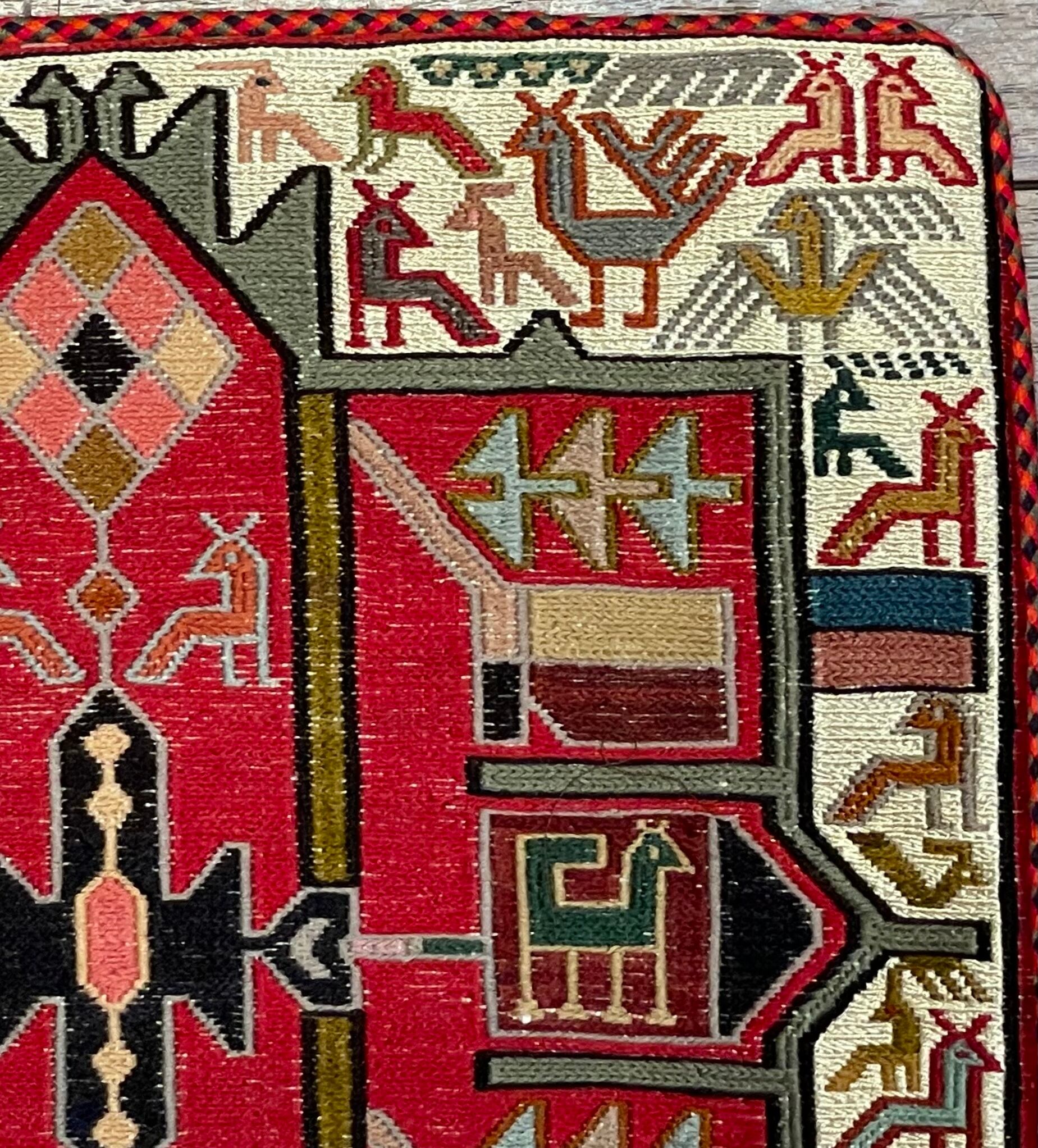 北西イラン、アルデビル産のソマック織りキリムをクッション表地に使用しています
