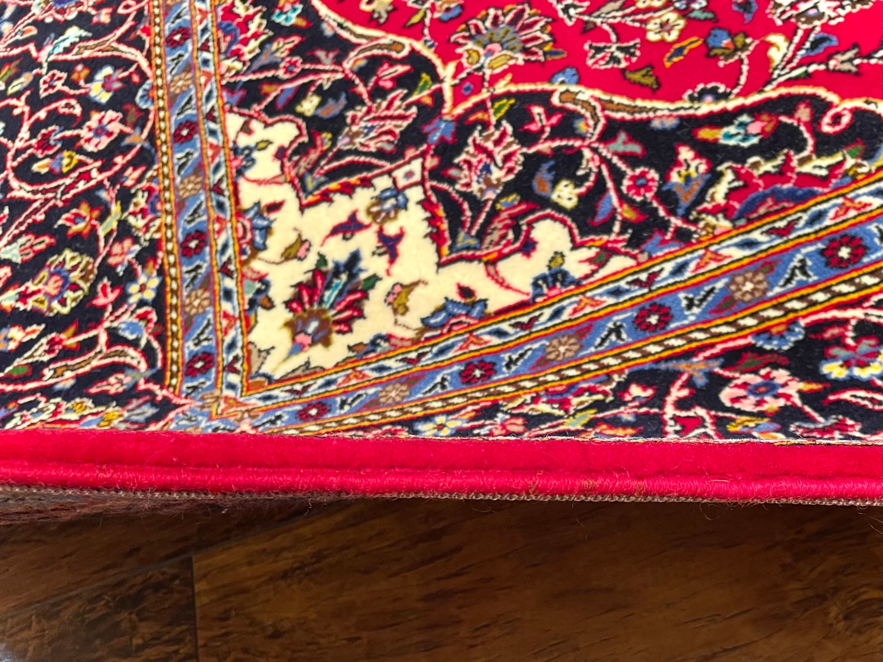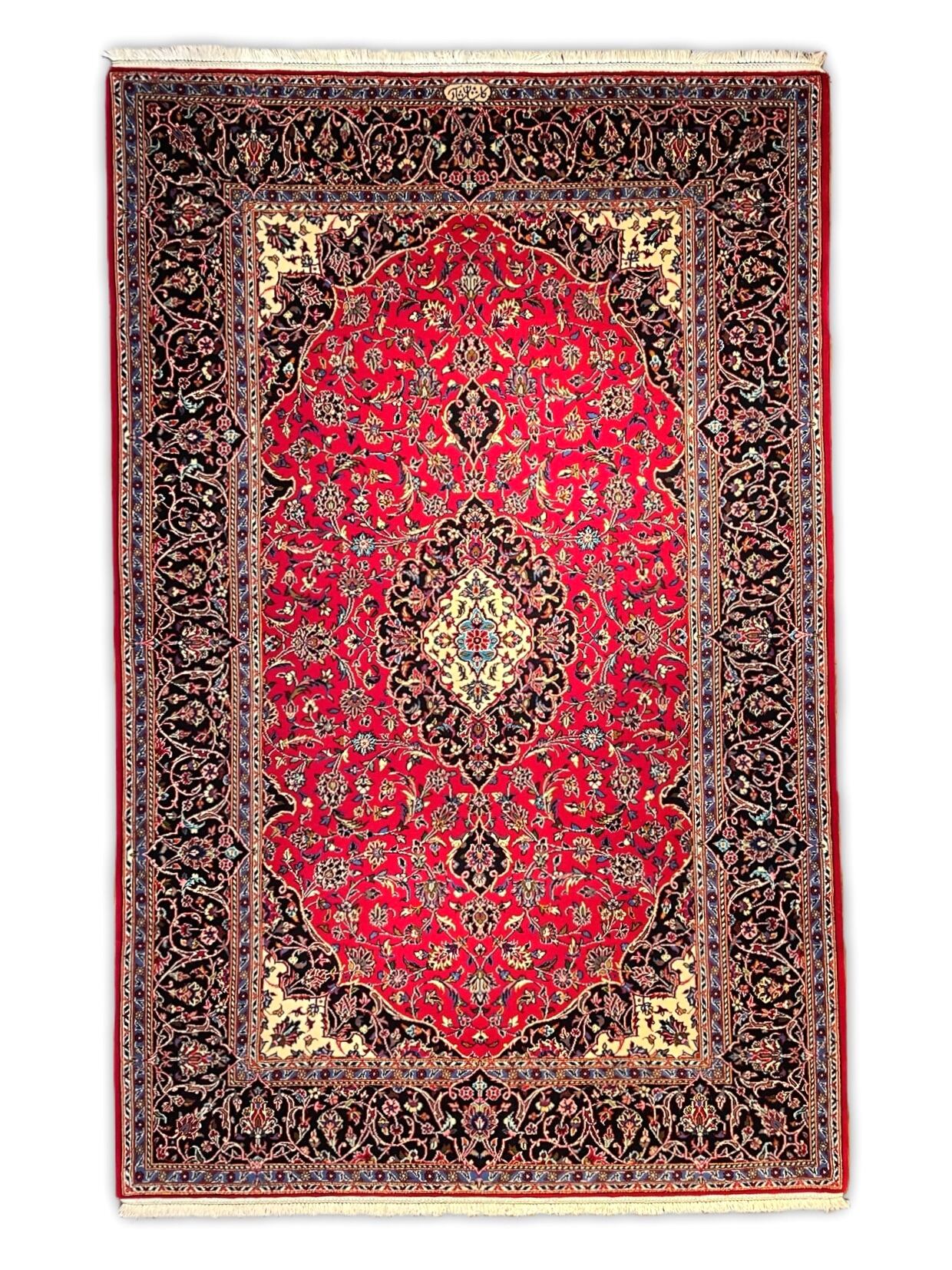 カシャーンは極度に乾燥し、農耕に適さない地理的背景から、古くから工芸品の生産に注力してきた街です。現在のカシャーンの絨毯は赤、又はベージュを基調としたものが主流で、中央のメダリオンが縦に長い形状をしていることが多いです。カシャーンの絨毯織りの技術はユネスコの無形文化遺産にも登録されています。