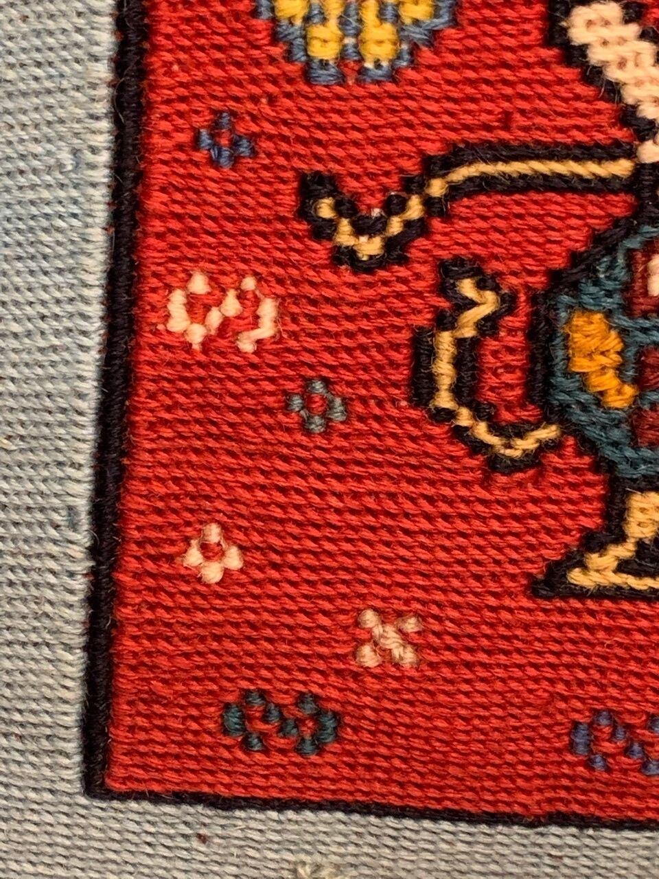 上質なウールをしっかりと撚った糸が使われているため全体的にもツヤがあり、しっとりとした肌触りの上質なキリムです。