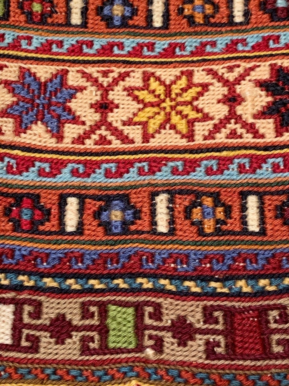 上質なウールをしっかりと撚った糸が使われているため全体的にもツヤがあり、しっとりとした肌触りの上質なキリムです。