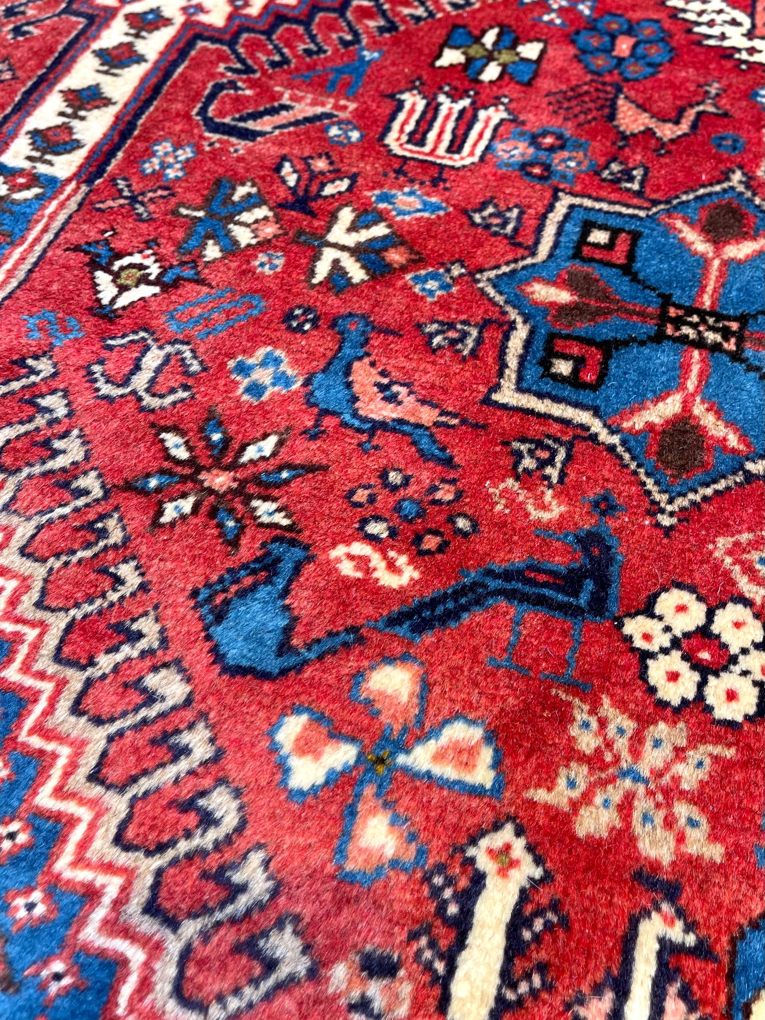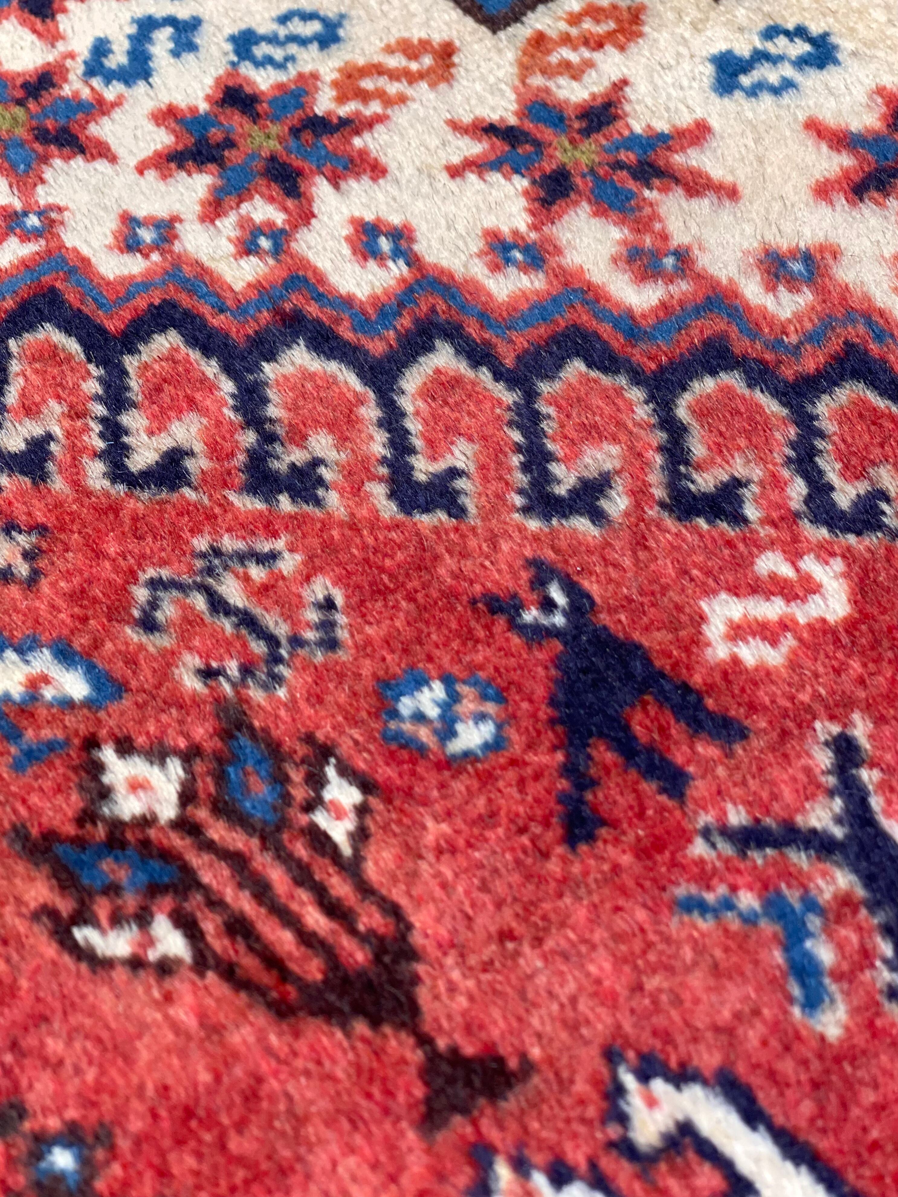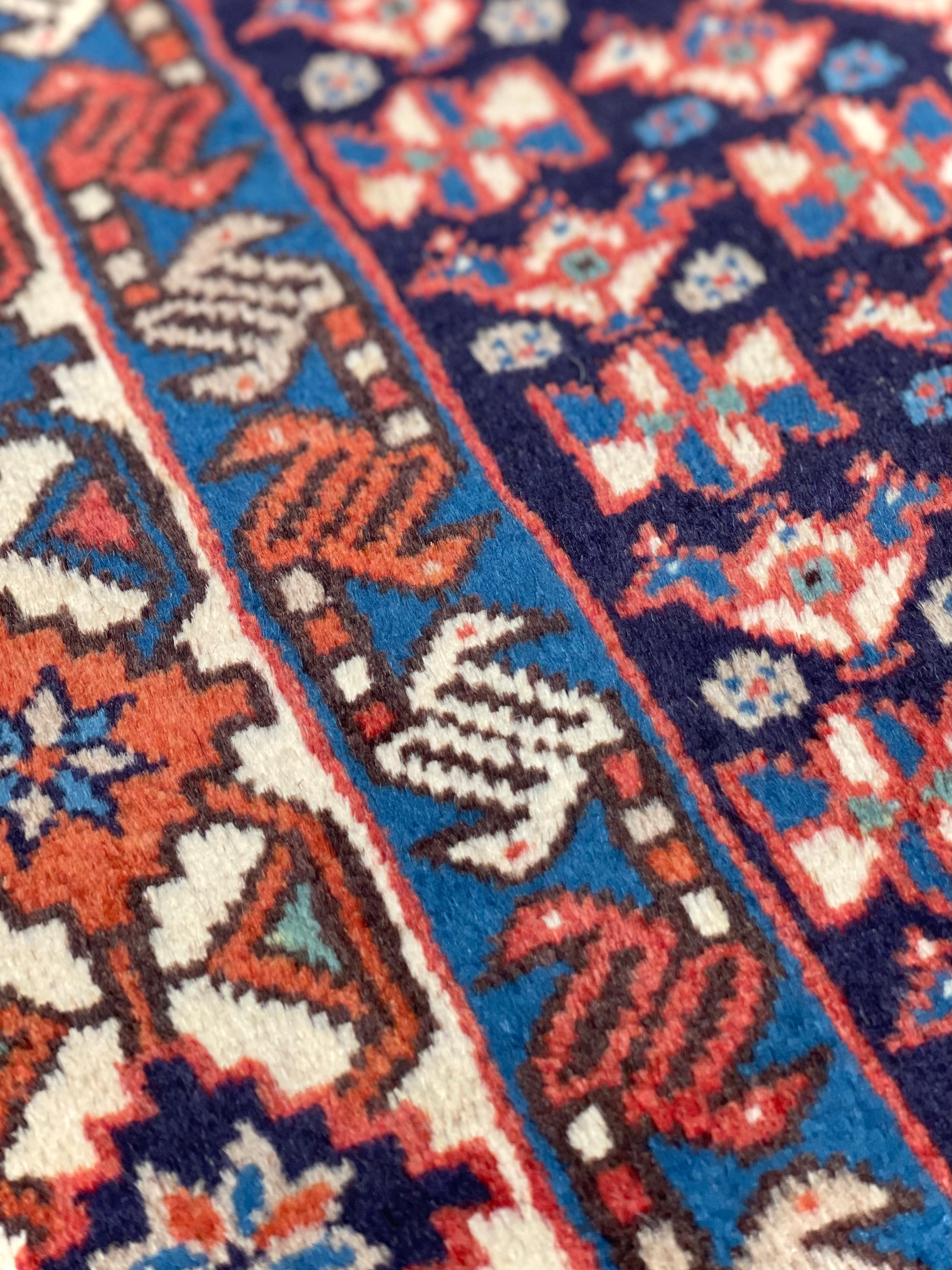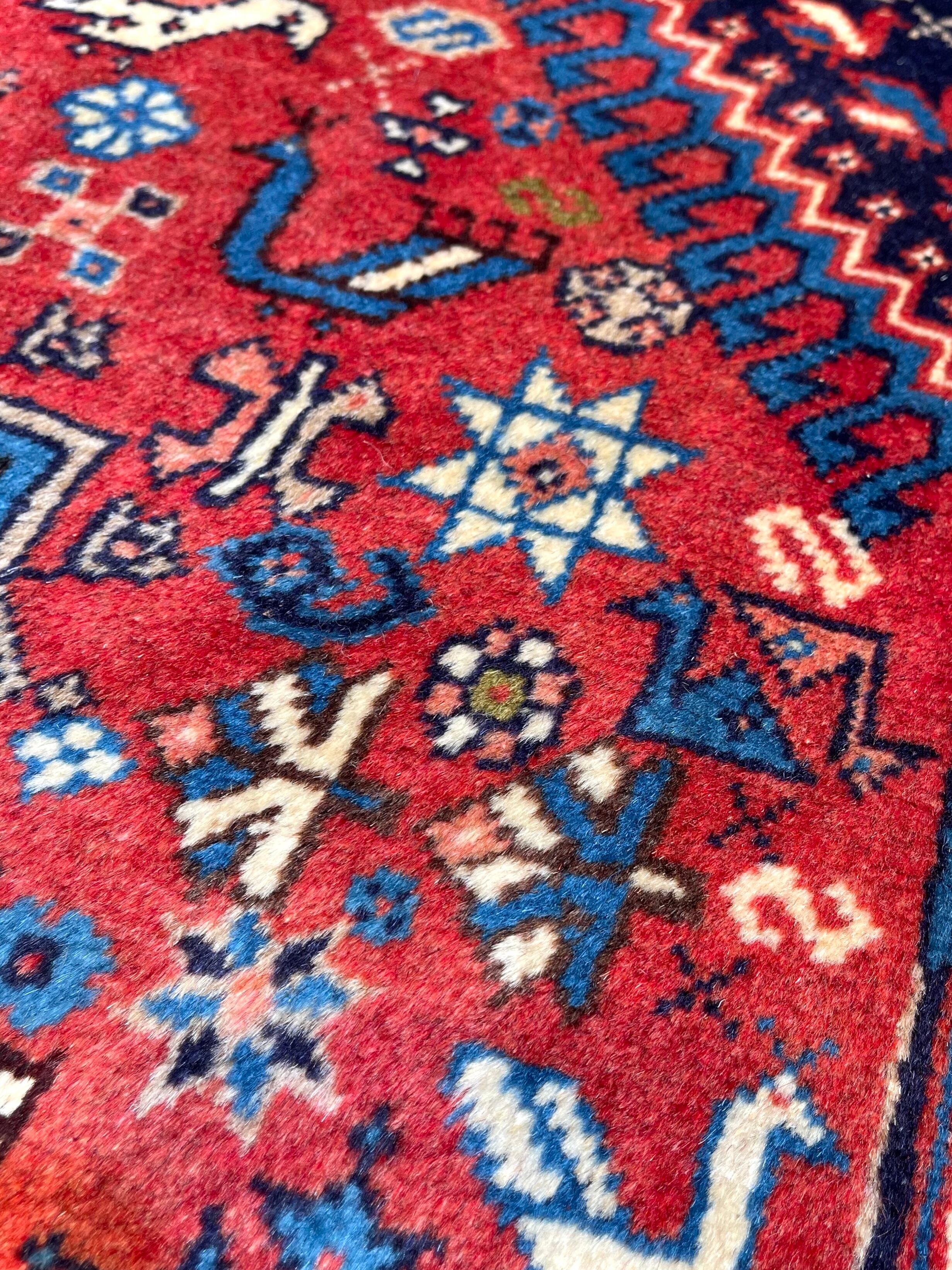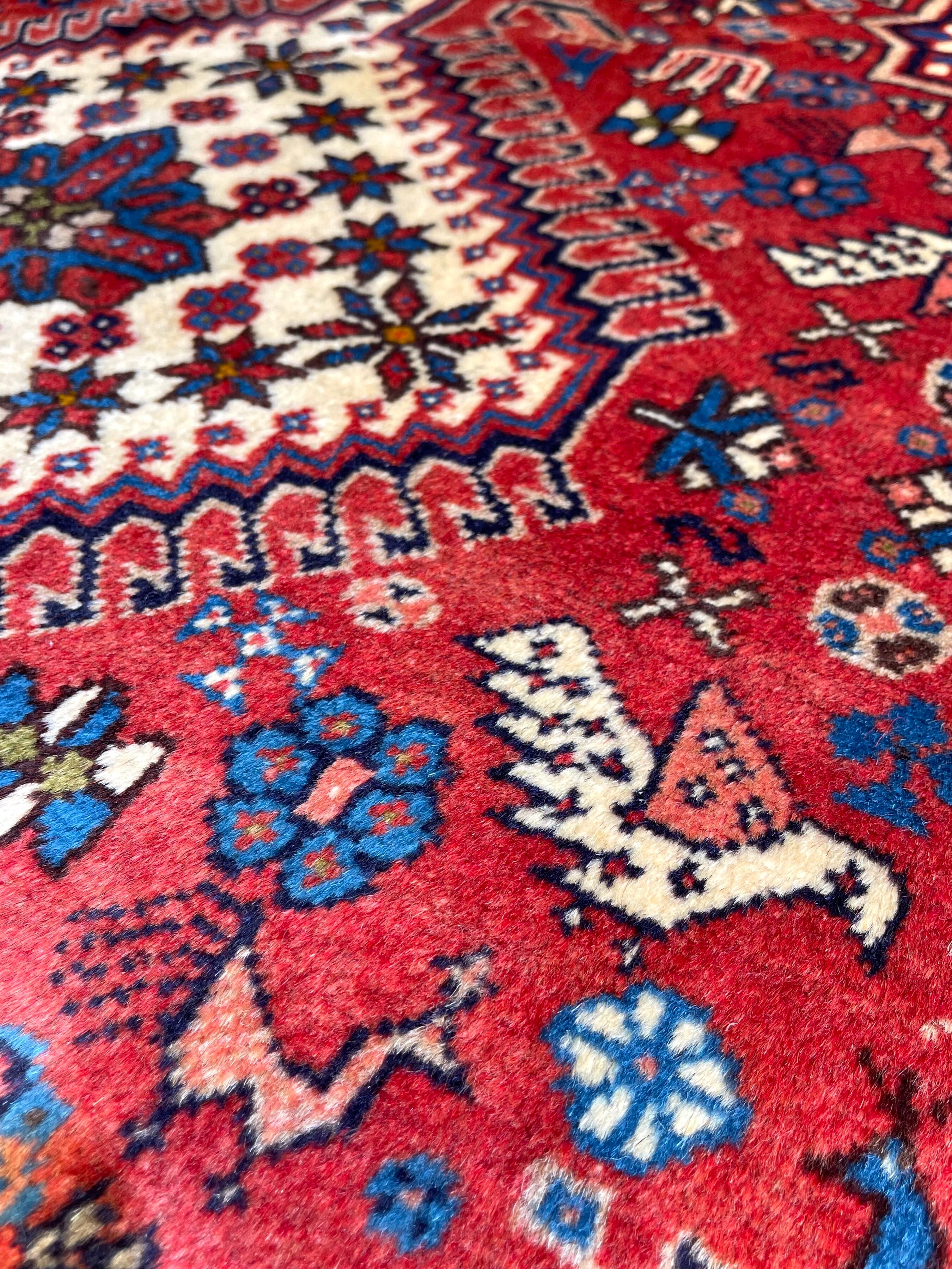 ヤラメ族はイラン中南部に暮らす部族です。ヤラメ族の絨毯は連続する菱形のメダリオンと基調を埋め尽くす無数の紋様で構成されてます。これらの特徴は近隣のルリ族とカシュガイ族それぞれのデザインの作り方に共通点が見られることから、部族そのものルーツに関しても意見が分かれています。全体としてイランの部族絨毯は、発色の濃いものが多いですが、ヤラメ族の絨毯は淡く水彩で色づけしたような印象です。また、細く上質なコルクウールで織られていることが多く、艶があり滑らかな肌触りもお楽しみ頂けます。
