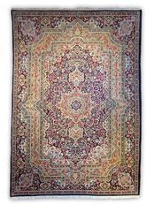 ケルマンの絨毯のデザインには、この地で先に行われていたショール生産の影響が見られます。ケルマンの美しいショールに関しては、マルコ・ポーロもその存在に触れており、当時のヨーロッパでは広く好まれていました。こうした歴史の中で、ケルマン独自の美的感覚が養われ、他に類をみない華やかな絨毯のデザインを作り上げています。