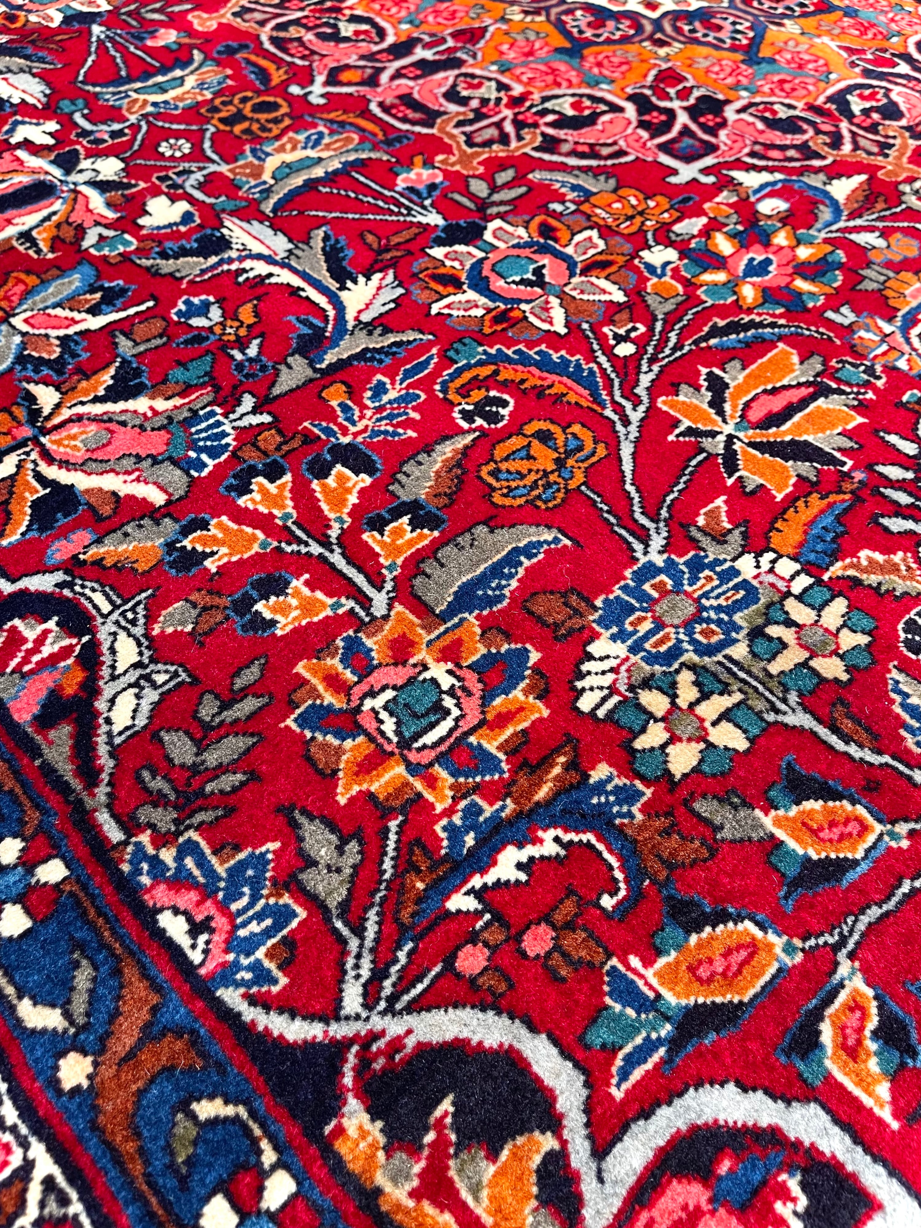 ビジャーは目の詰まった頑丈なウール絨毯の産地で、「鉄の絨毯」の愛称でも知られています。織りが細かいため、パイル(毛足)は倒れることなく直立し、絨毯の表面は均一して滑らかに整っています。重厚感のある雰囲気を持つことから、アンティーク家具などを使ったヨーロピアンなインテリア空間にお選び頂くことが多いです。